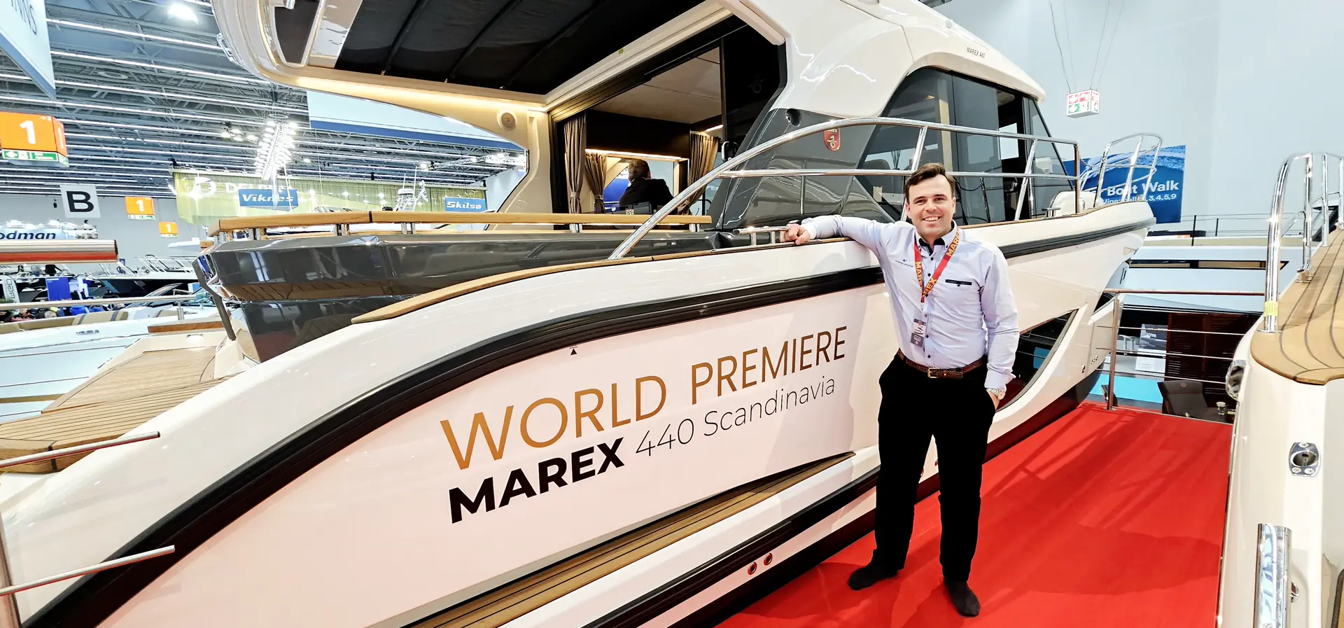 Benjamin Schøll hos Nordic Boats har allerede solgt en Marex 440 Scandinavia, som hadde verdenspremiere på årets Boot, og en Marex 440 Gourmet Cruiser, som ble levert sommeren 2024.