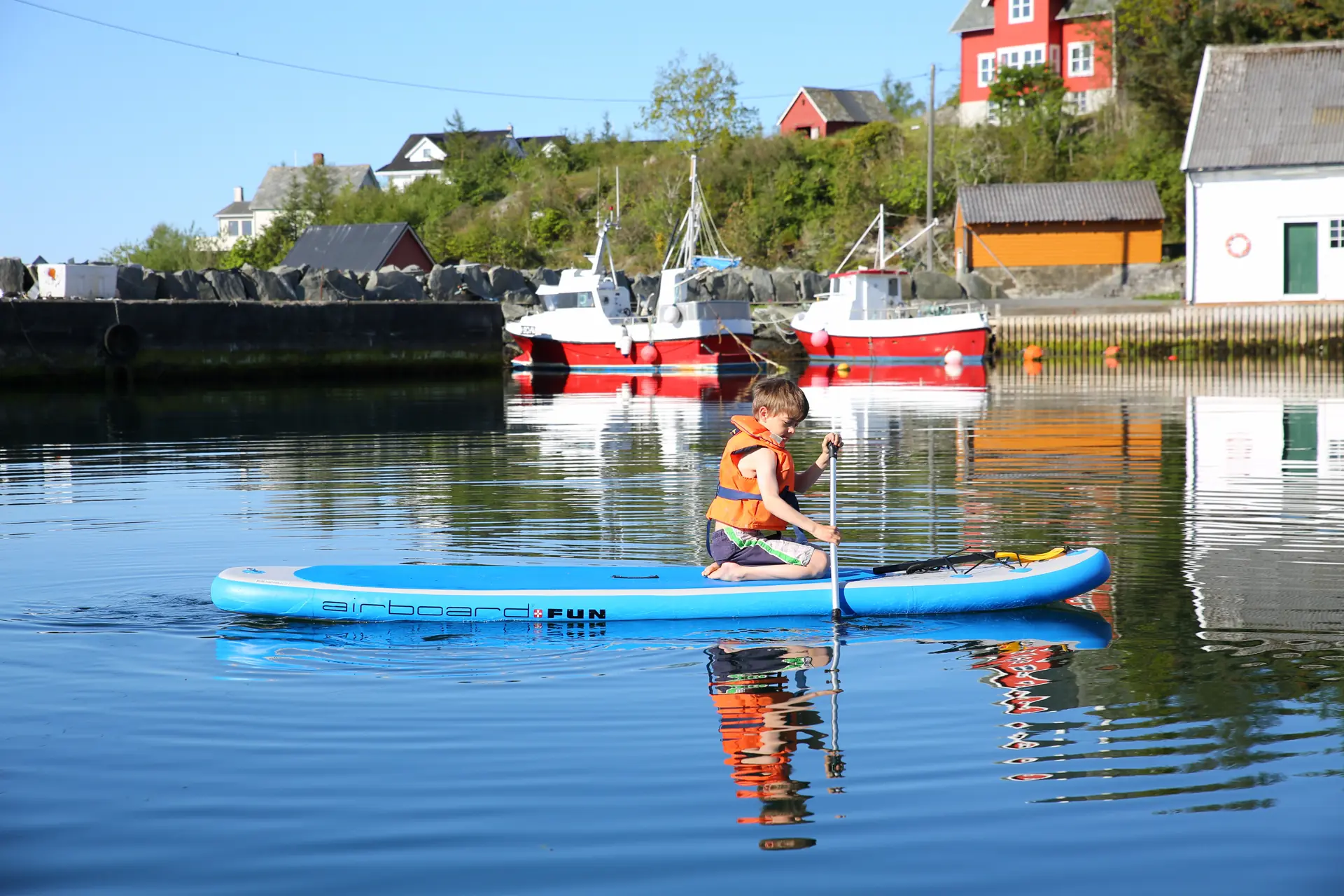 Et padlebrett (SUP) koster lett noen tusen kroner, men du verden så moro barna har med det. Fra padlebrettet kan man utforske uthavnen, fiske etter krabber og komme inn i viker der båten blir for stor.