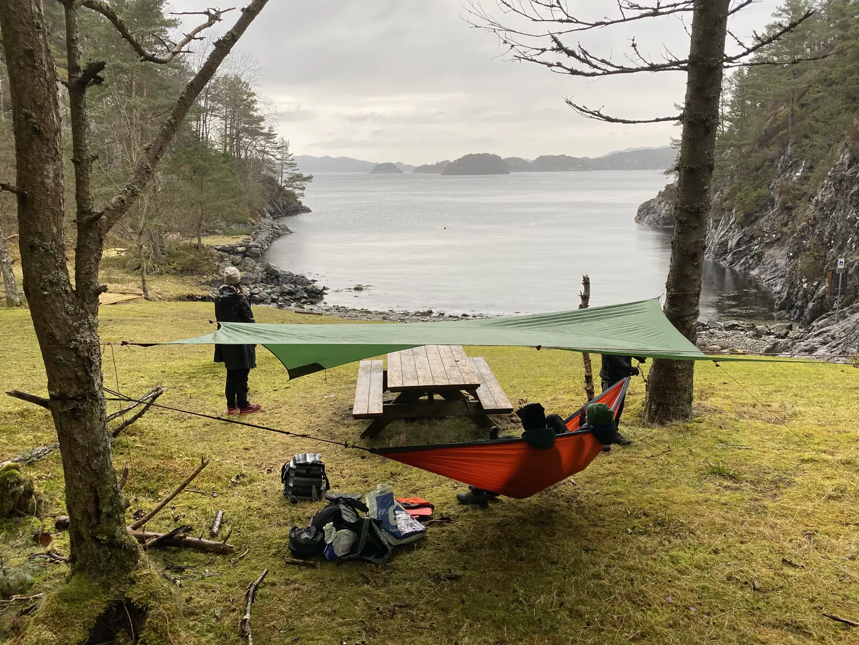 En tarp er egentlig det samme som en tynn presenning, men som er laget for friluftsliv. Den har ulike festepunkt og du kan henge den opp mellom trær og søke ly eller overnatte under den. En tarp gir herlig camp-stemning.