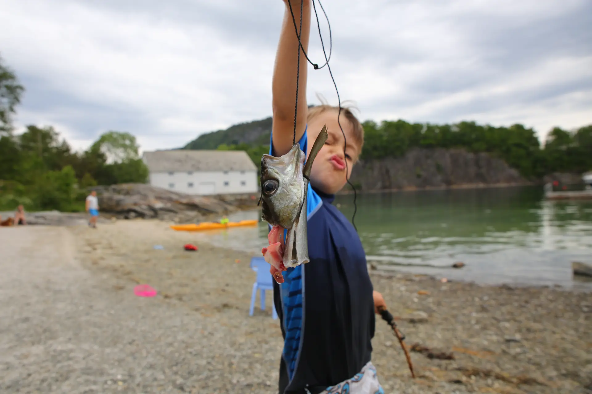Har du en pale, lyr eller makrell liggende i frysen? Ta den med. Dette er jo supert agn når barna skal fange krabber. Fungerer mye bedre enn blåskjell og sneglehus.