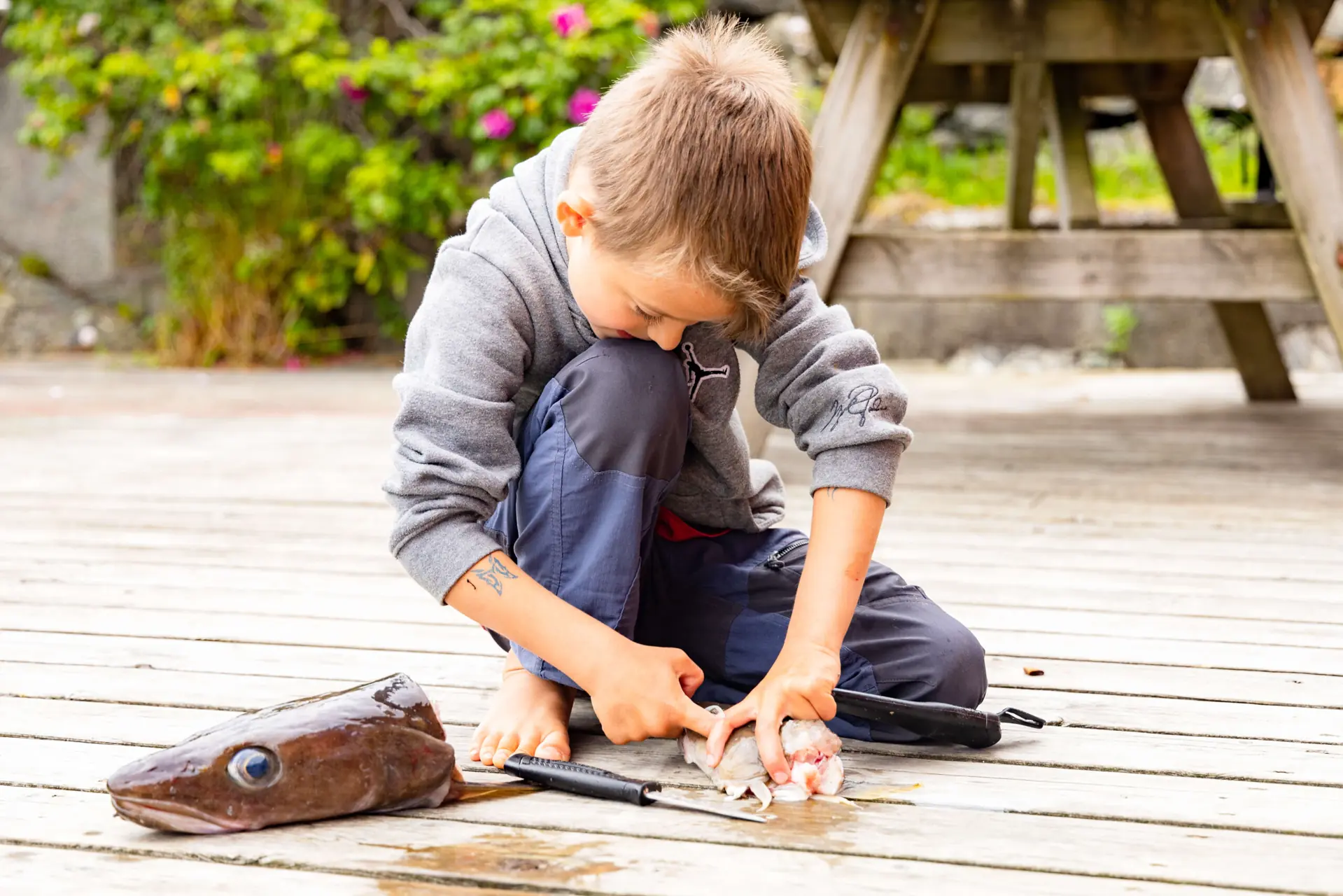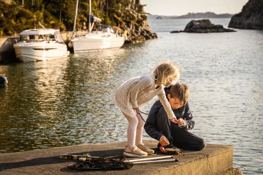 – Såg du lynet, pappa?! Det slo ned rett der borte over trærne! sier Sune (12) og peker på fjelltoppen ikke langt unna oss. Jeg kjenner jeg blir litt stresset og har lyst å bli ferdig med å sette sniksnøret så fort som mulig. Å være midt utpå fjorden når det lyner og tordner står ikke øverst på ønskelisten akkurat. Et nytt, kraftig tordenskrall smeller mellom fjellsidene i Vikebygd, en vakker bygd mellom fjord og fjell i Rogaland, hvor vi ferierer.