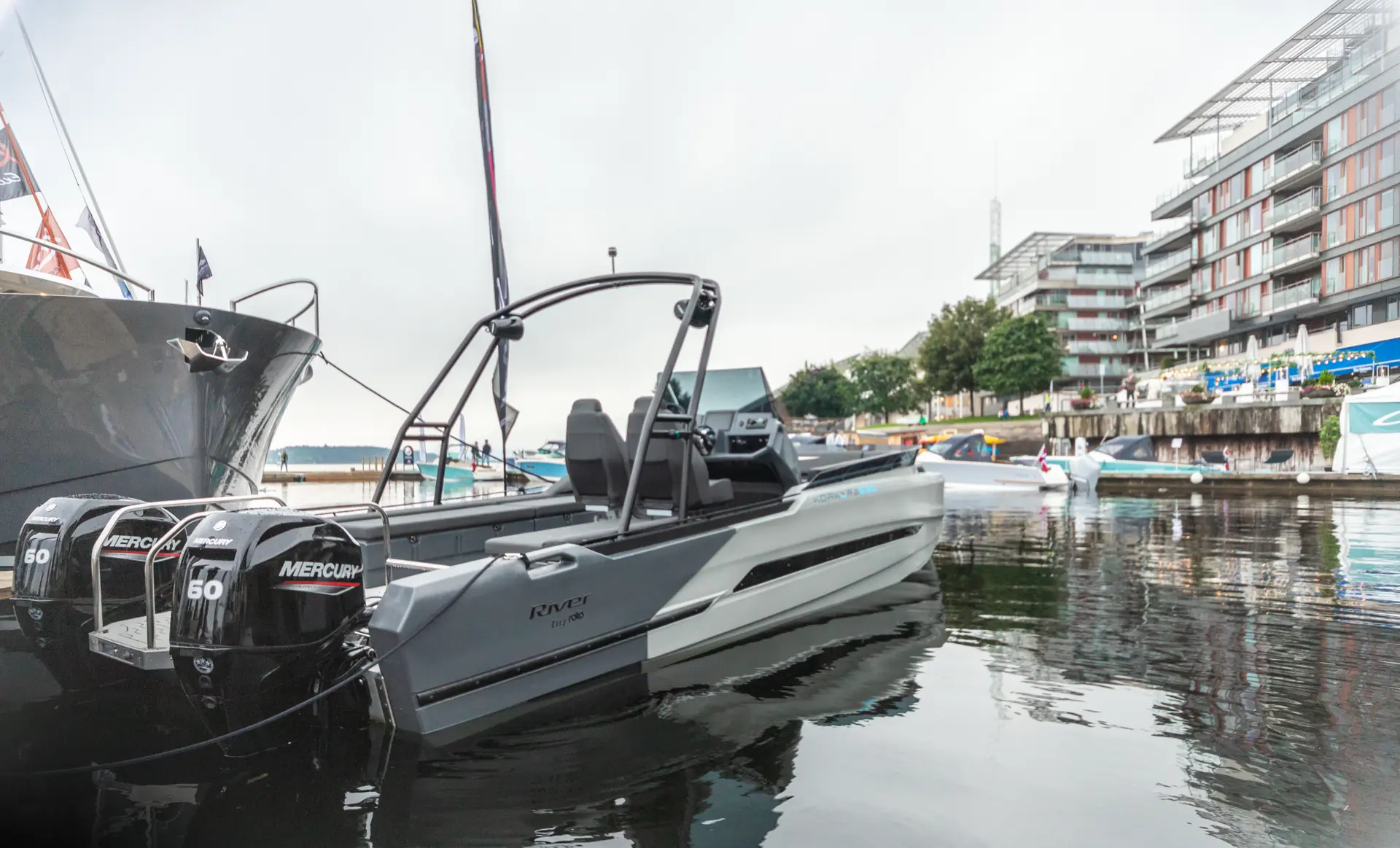 På Båter i Sjøen er demobåten utstyrt med største motorinstallasjon med 2 x Mercury 60 hk. Med den konfigurasjonen skal toppfarten ligge like over tretti knop, men River ser også for seg langt mindre motoralternativer – fra 2 x 9,9 hk. og singel installasjon. Et av testeksemplarene – med solceller på et tak - går med to elmotorer.