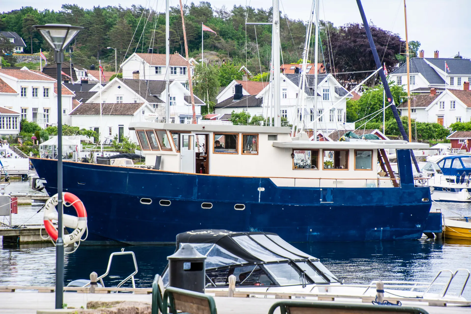 Båten har fått fast plass i Grimstad gjestehavn, men i sommersesongen legger også Knut-Erik og Marianne ut på båtferie, selv om båtlivet har fått en ny form med bolig som ferieplattform.