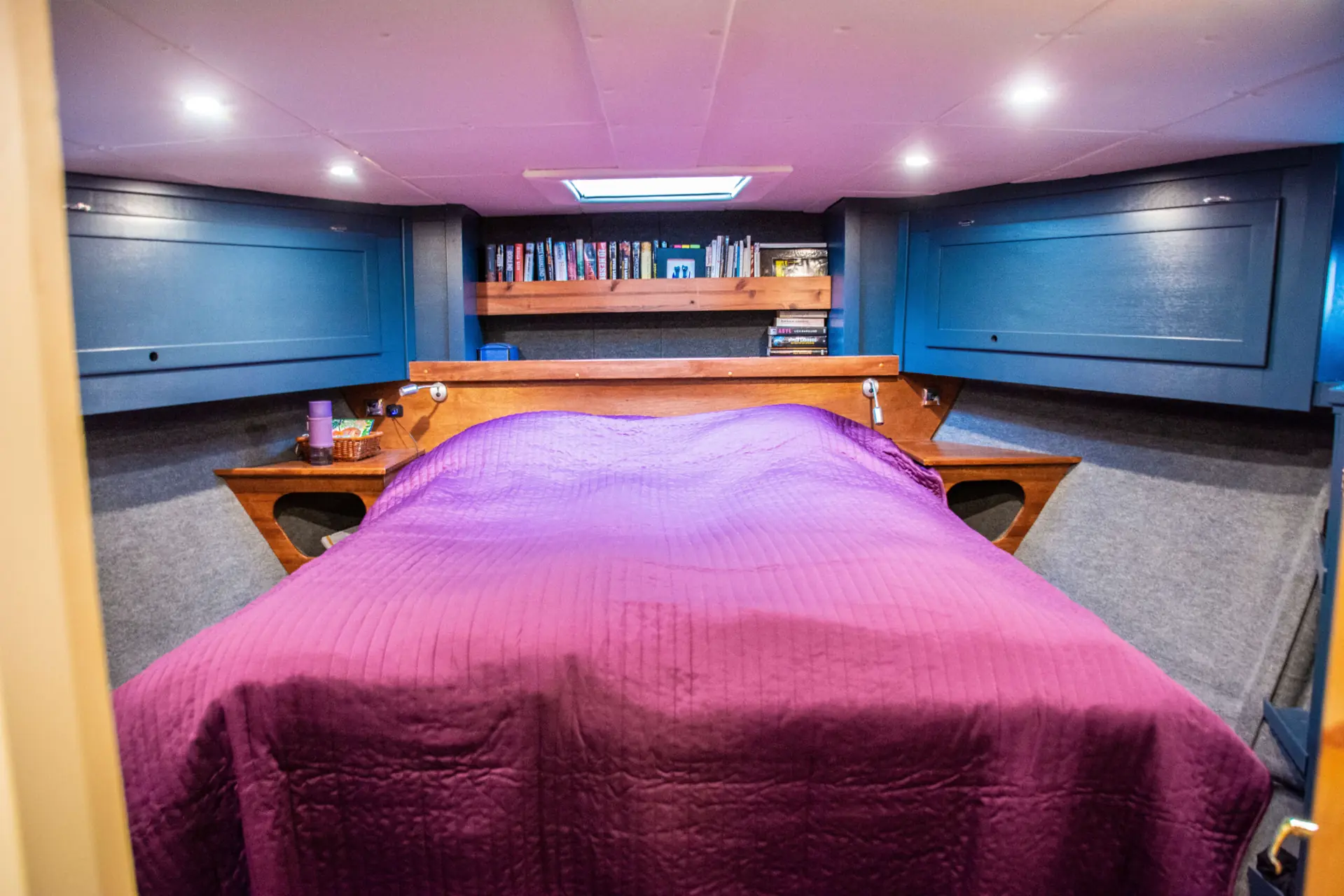 Lenger frem i båten finnes en gjestelugar på babord, et stort bad med dusj på motsatt side, samt eierlugaren helt forut. Det første som slår oss er at det verken er akustikk eller en eneste lyd utenifra eller en form for sjøklukk.