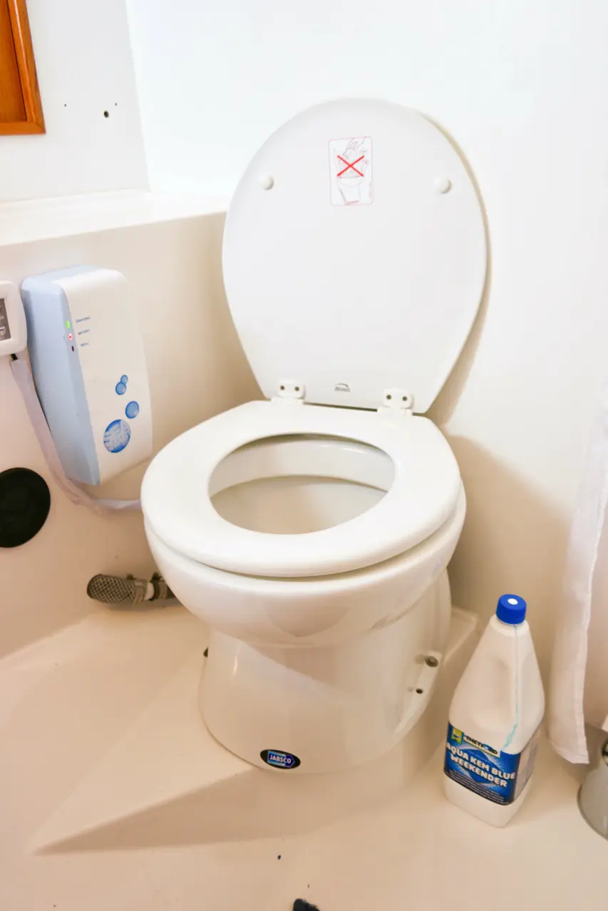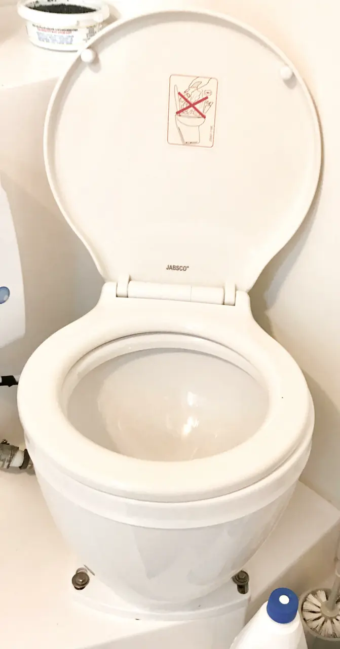 Turbotoalettet: Vi har testet dette «turbotoalettet» fra Jabsco i sommer. Et toalett med liten bolle (LxBxH: 373x342x402). Vi velger å kalle det «turbotoalettet», da kvernen som sitter i bunnen av potten gir innholdet en skikkelig tur med god kraft fra potte til septiktanken. Toalettet er kompakt og plassbesparende og samtidig stillegående. Leveres med fotbryter eller veggpanel. 12V/24V. Pris for Jabsco Liteflush fra kr. 6 500 kroner. Leveres med fotbryter eller veggpanel.