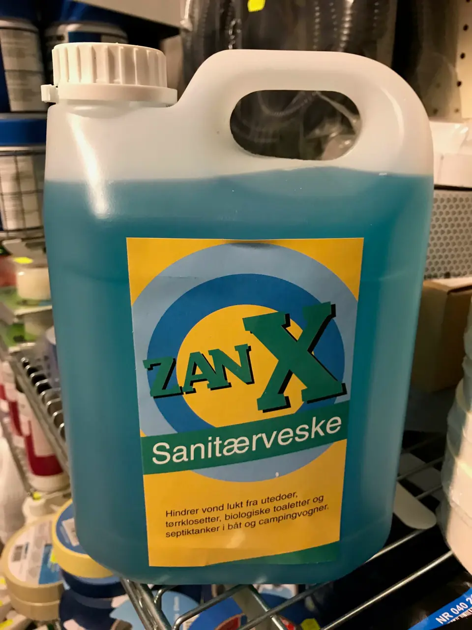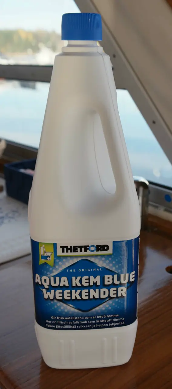 Effektiv sanitærveske: Aqua kem er mye brukt til å helle i toalettet. En sanitærveske for daglig bruk. Gir i tillegg frisk duft. Prislapp rundt 100-lappen. Finnes i forskjellige dufter.