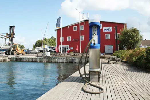 Har båten montert sluttstykke for å tømme direkte til mottaksstasjon i land så er dette den beste løsningen, og i Sverige er dette et påbud. Der er det strengt forbudt å la innholdet i septiktanken gå rett i havet. Langs svenskekysten er det også lagt opp til en rekke mottak, noe vi her hjemme ikke er særlig bortskjemte med enn så lenge. Hos oss kan det være langt mellom mottaksstasjonene. Og i vinterhalvåret er ofte disse i tillegg stengt.