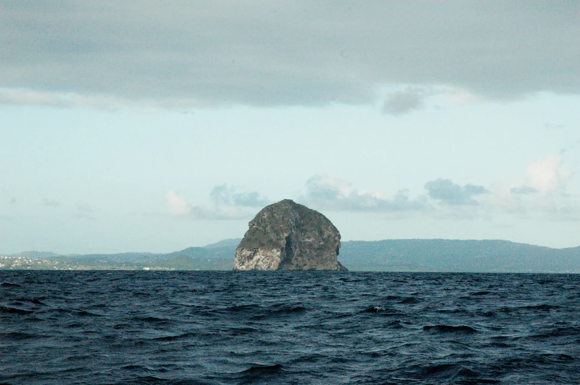 Etter en visitt i den lille byen sjekket vi ut og kasta loss igjen neste ettermiddag. Nå var det duket for en natteseilas til neste øy, Guadeloupe, helt uten protester fra Evys side. Tvert imot var hun blitt mer vennlig innstilt til livet på bølja’n blå og siden hun ikke trengte å ta nattevakt håpet hun på å få seg en god natts søvn i køya. De to øyene ligger svært tett, men med sitt langstrakte areal utgjør Guadeloupe en solid etappe, spesielt for oss som hadde siktet oss inn mot den nordlige delen. Vi holdt oss et godt stykke unna kysten, likevel hang vindskyggen fra øya tidvis over oss og natta ble langdryg. Stadig veksling mellom rundt 3-4 knops framdrift og konstant blafring i seilene var en tålmodighetsprøve og periodevis hadde vi ikke annet valg enn å gå for motor. Langsmed kysten møtte vi i tillegg på en utfordring. Mens Linn Charlotte hadde vakt oppdaget hun et lengre fartøy med styrbord og babord lanterner samt gult lys lengre forut. Det beveget seg på en pussig måte og i det ene øyeblikket kunne man bare se det røde lyset, ikke lenge etter dukket det grønne lyset opp.