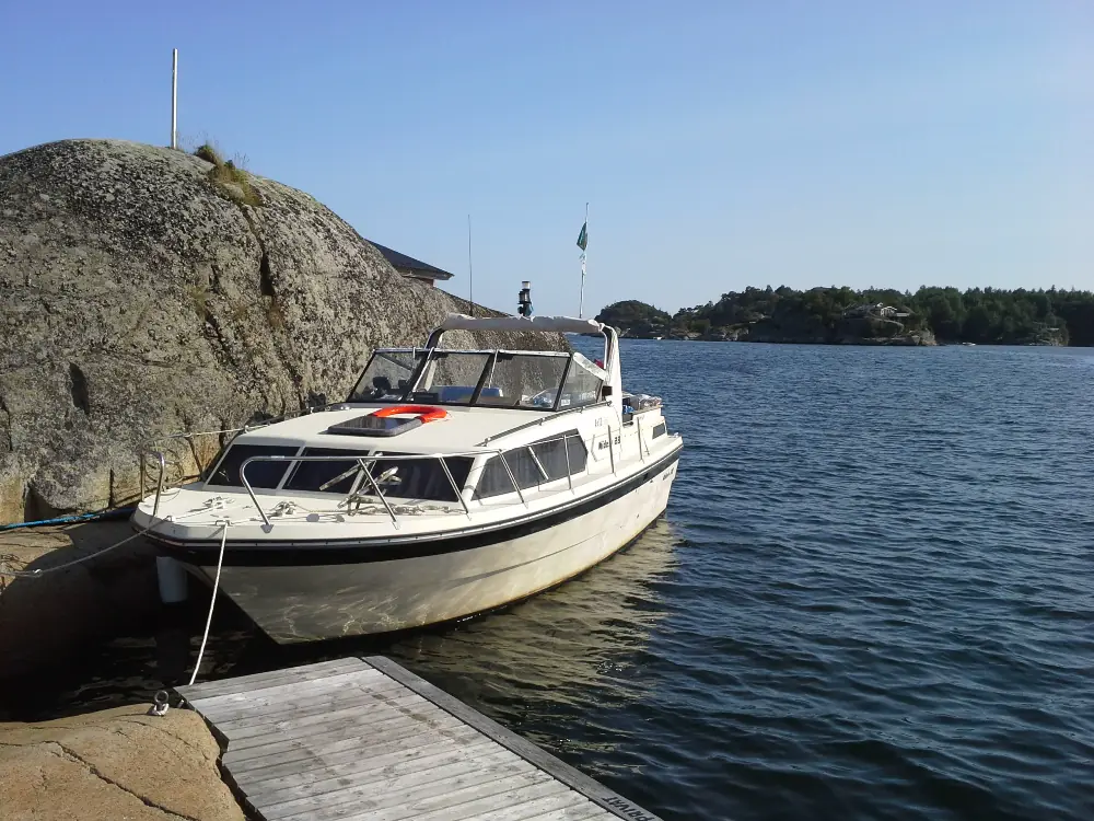 – Den ble kalt for romskipet på grunn av all plassen, og i 1984 var dette en stor båt. For oss betød ståhøyde mye, til og med på badet. Selv om vi ble veldig glade i de to 24-foterne vi hadde, var det enormt behagelig å ta det skrittet, og vi har ikke angret et sekund, og ikke syslet med å selge eller bytte den ut heller. Her sitter en bunnsolid Yanmar på 77 hester som har gått 3 609 timer på de årene. Den ble riktignok levert med Yanmars største alternativ den gangen, på 55 hk, og året etter byttet jeg inn i en 66 hk., før vi fikk installert denne motoren i 1986, og siden har ikke båten vært til å kjenne igjen. Den gjør nå 17 knop på maks og marsjer fint opp mot femten knop, og for oss som tar turen til Arendal hvert år er det ganske ideelt. Normalt har vi kjørt cirka 250 timer hver sesong og holdt oss mellom Smögen-Mandal, og selv om vi har hytte på Sørlandet er vi heller i båten. Det er noe med å våkne opp og være der.