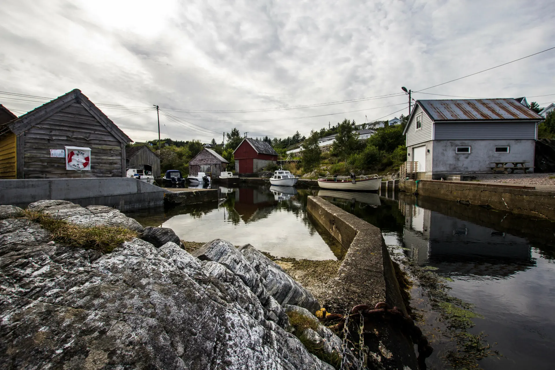 – Siden vi fikk tak i noe stein, bygget vi en liten «molo» for å forminske draget i havna, tilføyer nestlederen.