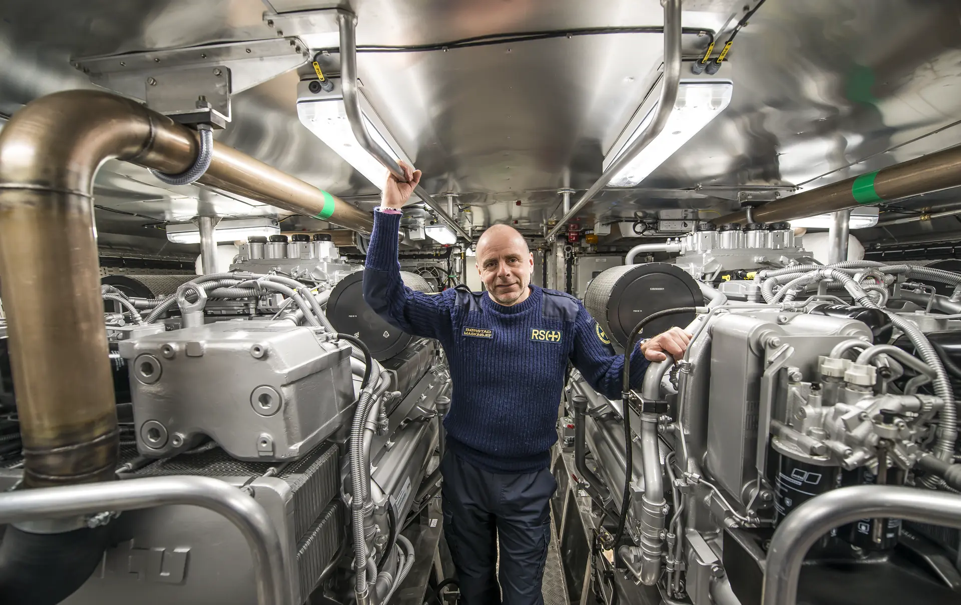Maskinist Per Børstad begynte i Redningsselskapet da båten sto under bygging hos Swede Ship i Djupvik og kun var et aluminiumsskrog med overbygg.