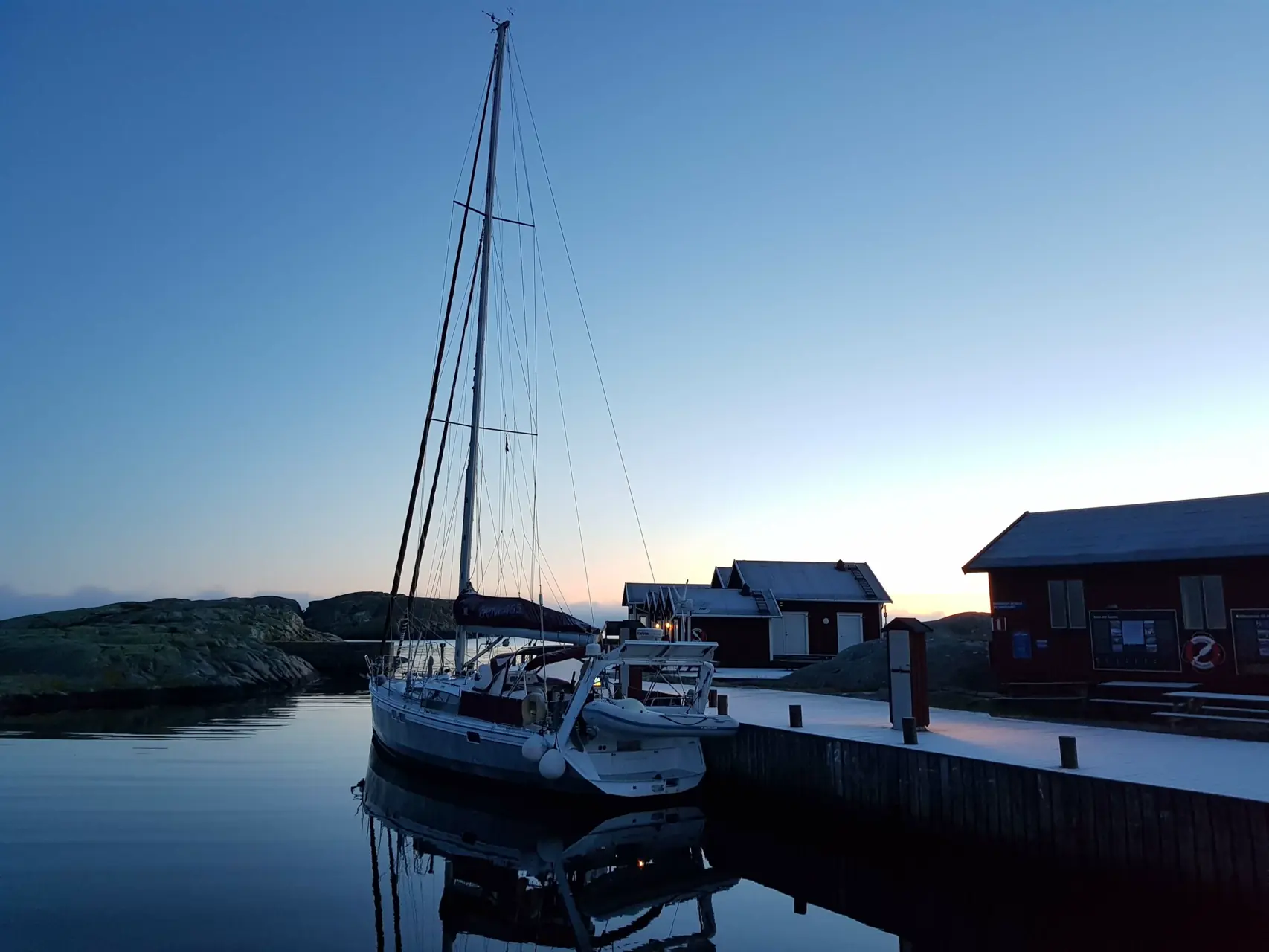 3. juledag. Endelig litt vind. Vi heiste seil og satte kursen nordover. Systembolag og annen bunkring fristet. Vi ankom Strømstad etter mørket. Den innerste delen av havna var stengt grunnet ombygging, men med få båter, fant vi fin longsideplass. Etter et par dager, fristet en uthavn. Vi strakk oss helt til «Alska», Nordre Langö, et par nautiske mil vest for Strømstad. En flott kveld. Igjen.