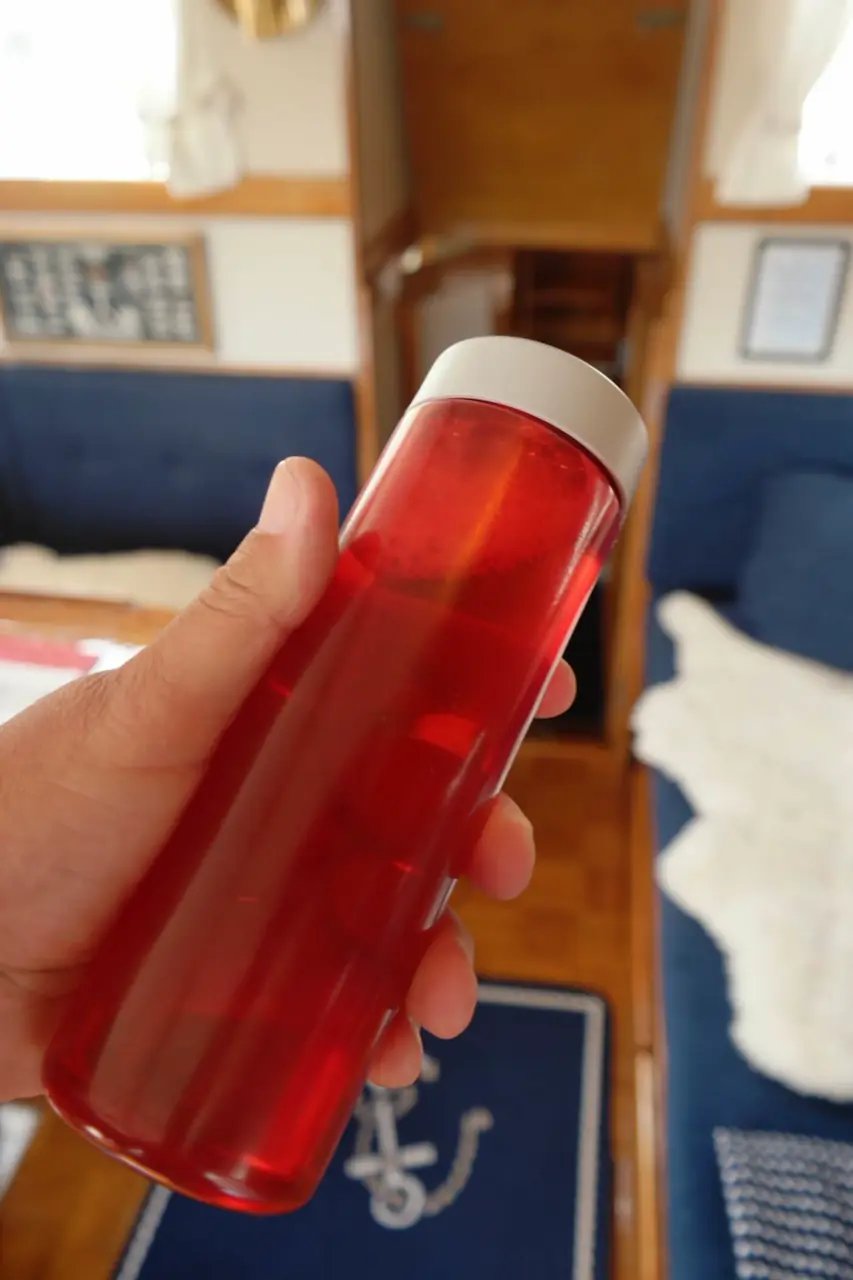 Vi har denne «Slukkegranaten» Bontel fastet ved døråpningen ombord. Denne er utviklet for slukking av brann i små, lukkede områder. Slukkegranaten brukes ved å kaste «granaten» mot brannstedet. Når væsken i «granaten» kommer i kontakt med flammene blir en del omdannet til ufarlig gass, som kveler brannen. Resten legger seg som en kjølende film over alle overflater og begrenser faren for reantenning. Fåes hos blant annet Stansefabrikken.no og Seatronic.no og har en pris på rundt 1 250,- kroner.