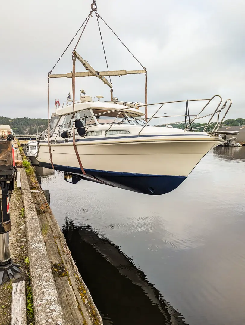 Etter et par dager i Halden stod vi nå og gravde søvnen ut av øynene i gjestehavna. For i dag skulle det skje. Klokka var 06:00 og etter en sterkt påkrevd kopp med det sorte gull, skulle vi kjøre båtene dit tre arbeidskarer fra kranfirmaet vi brukte skulle løfte oss inn i drømmen om en båtferie - i en av Europas mest berømte vannveier.