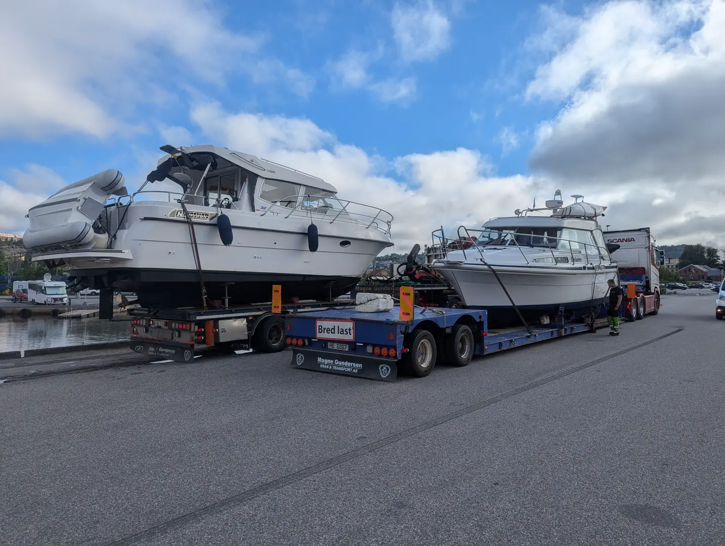 Proft og effektivt ble to båter, en på 31,5 fot og en på 32 fot, løftet ut av Norge og satt på vannet i Nössemark i Sverige. Vi fortøyde til en brygge tilhørende stedets campingplass. Der ble noen siste småting i båtene klargjort og lunch inntatt. Nå sto fire blanke, ubrukte uker som båtfanter foran oss i omgivelser som skiller seg vesentlig fra alt annet vi to parene har gjort sammen tidligere. Ferden gjennom Dalslands kanal kunne endelig starte.