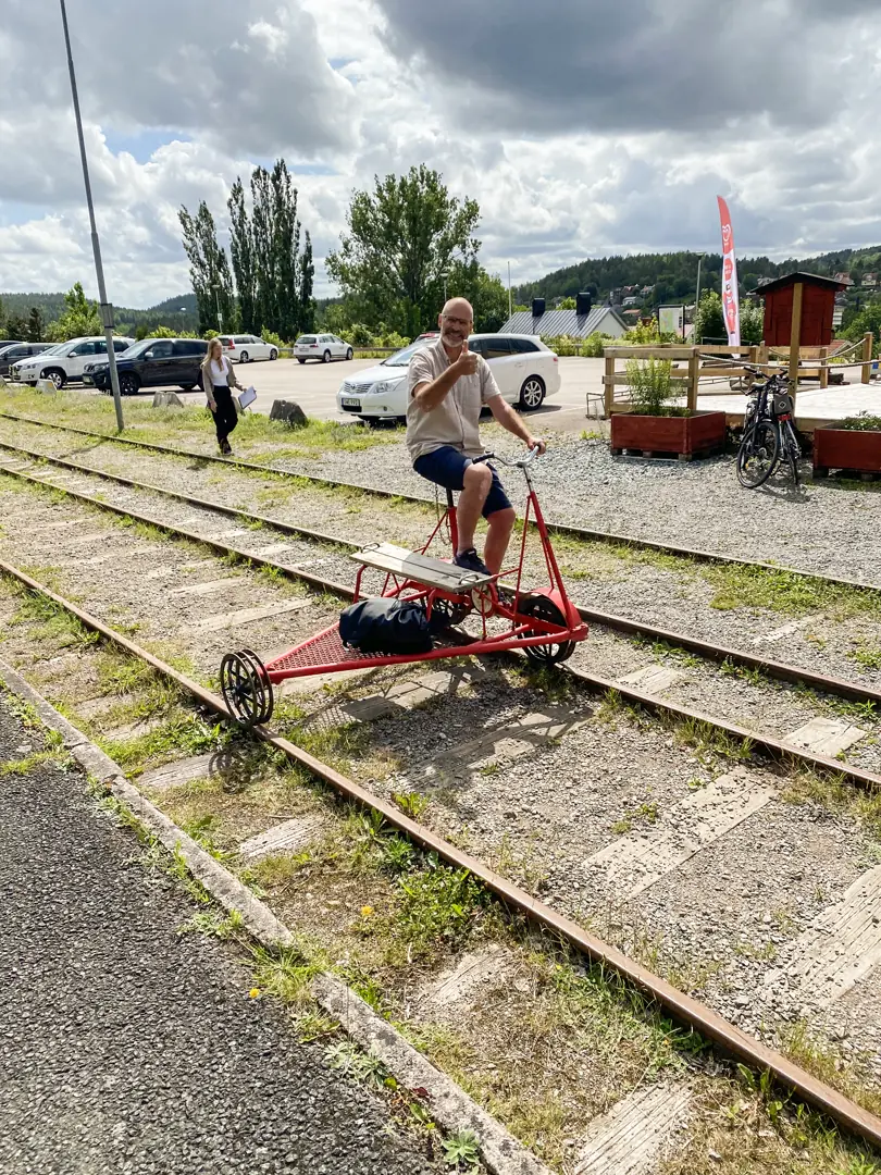 Etter dette, samlet vi oss på den koselige kafèen i tilknytning til museet. Nå var det tid for dagens hovedaktivitet: Dresin. På et gammelt, nedlagt jernbanespor kunne man sykle en dresin i en mengde ulike distanser.