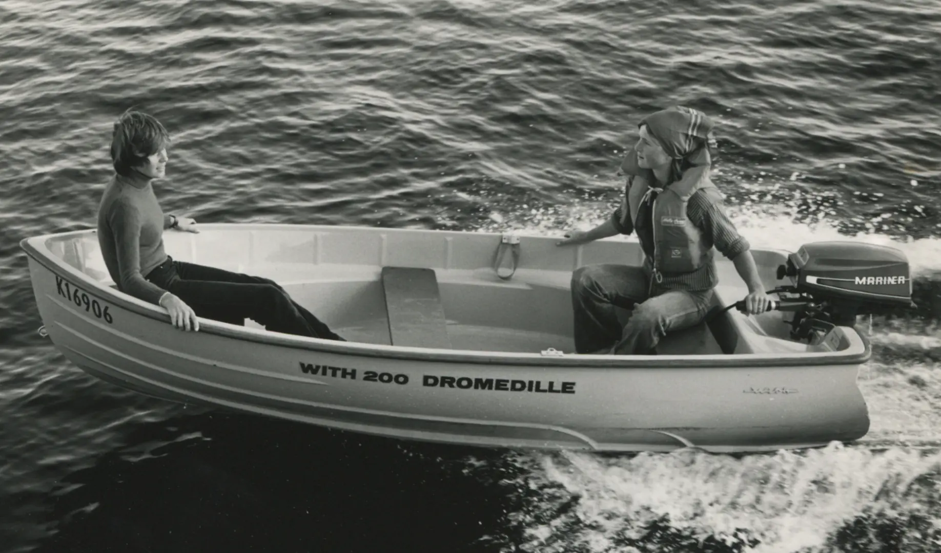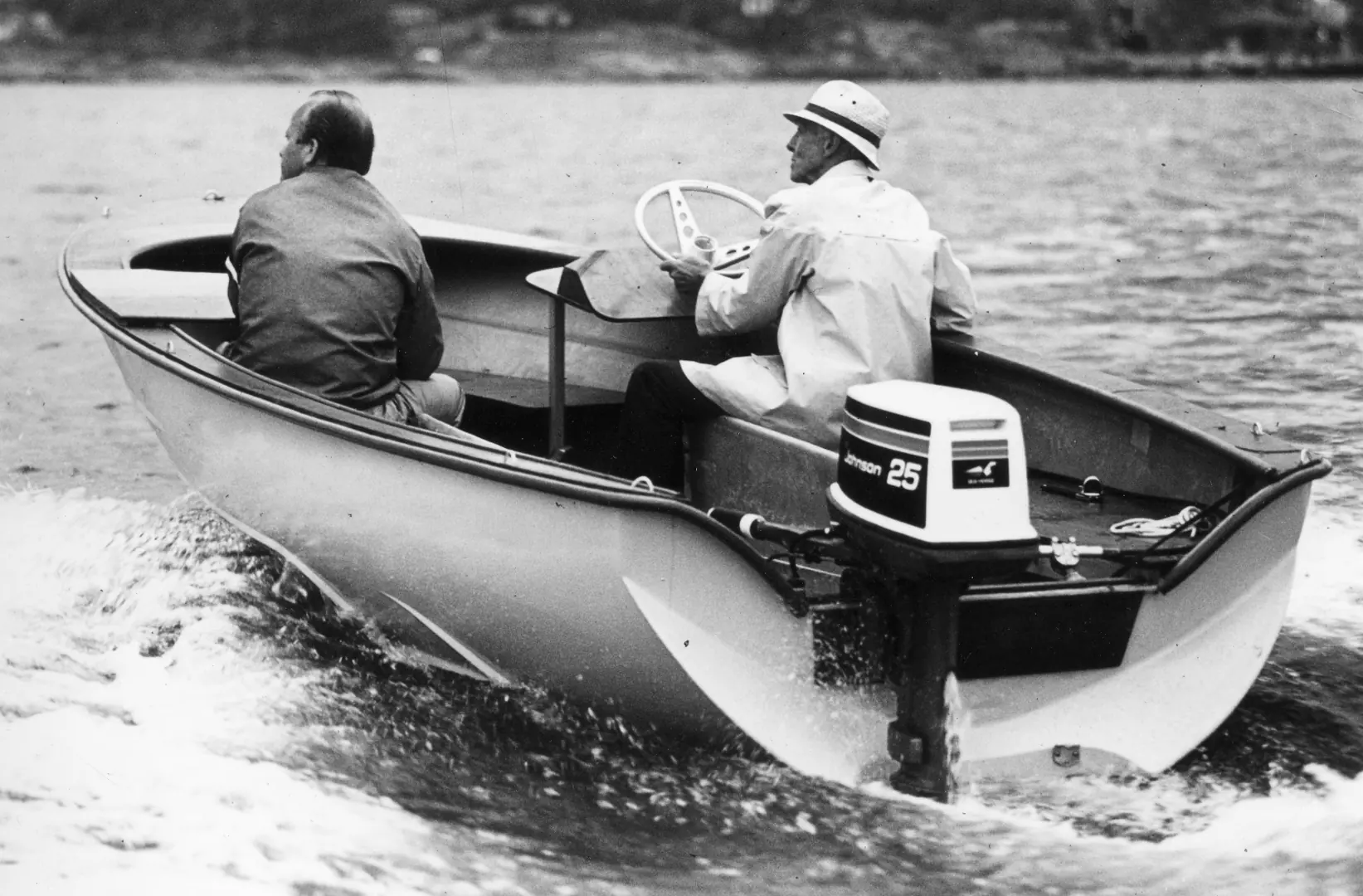Og så fortalte han begeistret om Dromedilleprinsippet sitt, om bunnkonstruksjonen med en ekstra vannavviser som gjorde båten mer stabil og løftet den lettere i plan, og om den spesielt utformede hekken.