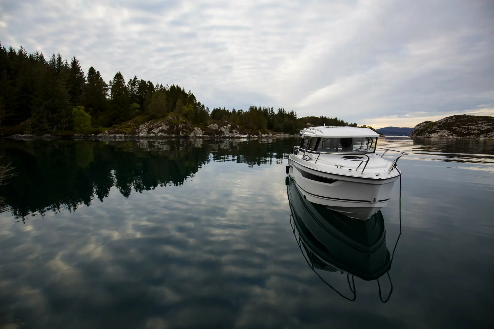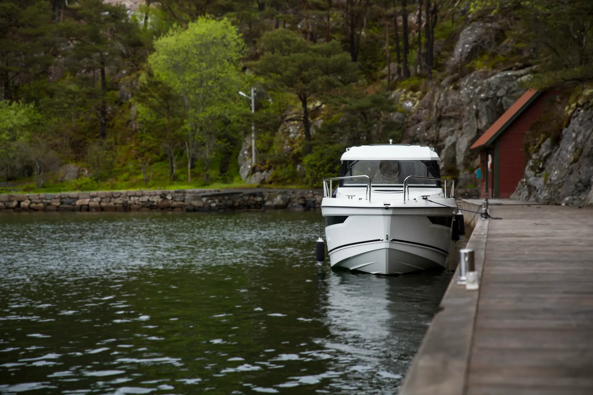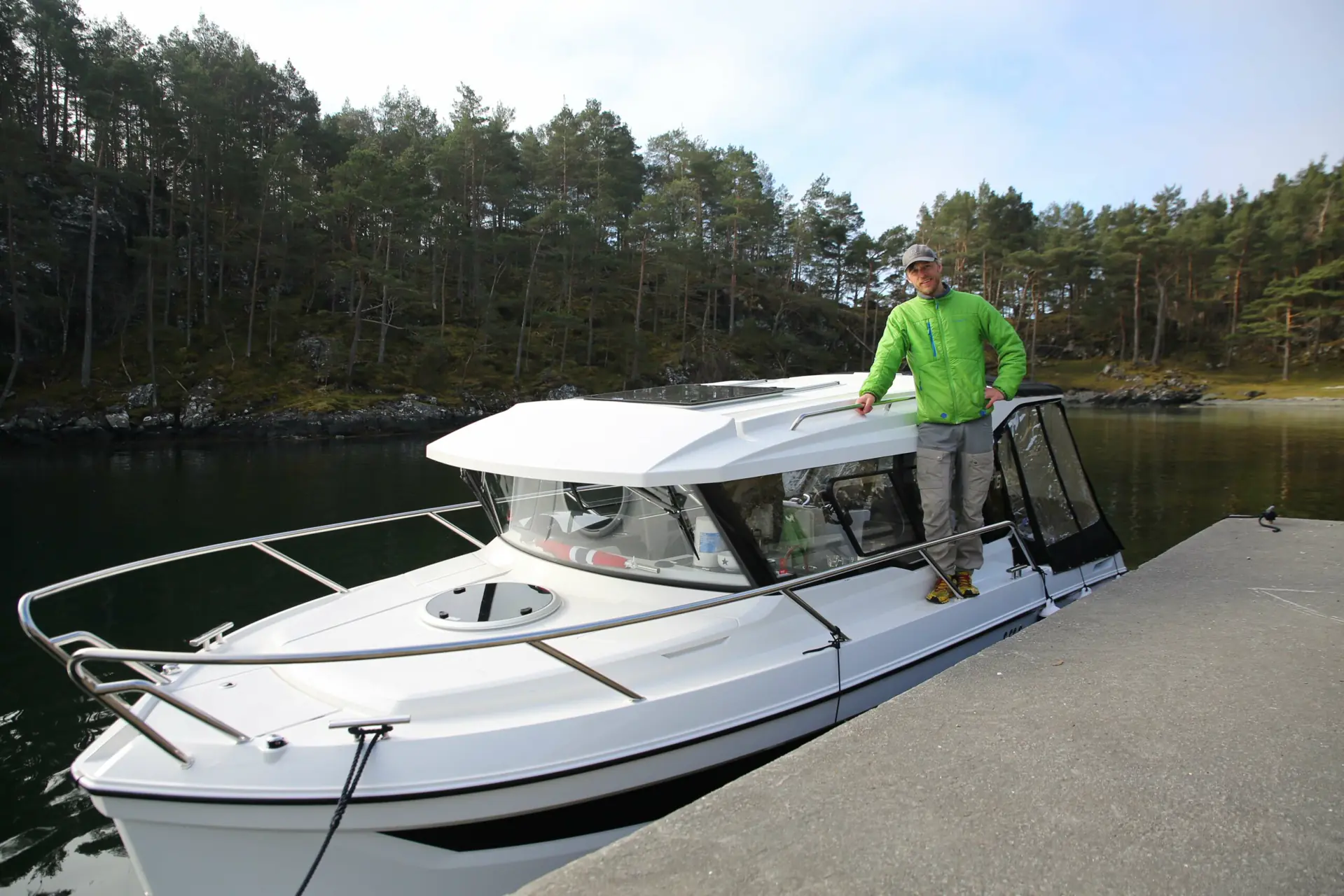 Noe av det første jeg måtte lære meg var å legge til kai med vår nye båt. Askeladden P76 Weekend er 25 fot og helt annerledes enn skjærgårdsjeepen jeg var vant til. Den er tyngre (1 800 kilo), og både ny og kostbar, så derfor var jeg ganske stresset og nervøs første gang jeg skulle legge til kai ved havnen Vedholmen i Bjørnafjorden. Jeg følte alle stirret på meg og vurderte manøvreringen min. Planen var å legge seg elegant inn til bryggen, men det gikk overhodet ikke bra: Jeg kommer på skrå mot kaien, det er sterk strøm, vi drifter og samboeren min Line tør ikke hoppe i land. Båten kommer ut av kurs og jeg holder på å dunke borti båten bak meg. Først etter tredje forsøk lykkes jeg å legge inntil, med god hjelp (og sikkert litt humring), fra folkene på kaien. Heldigvis har jeg lært noen gode triks siden da, og nå går det mye lettere. Baugthrusteren er gull å ha.
