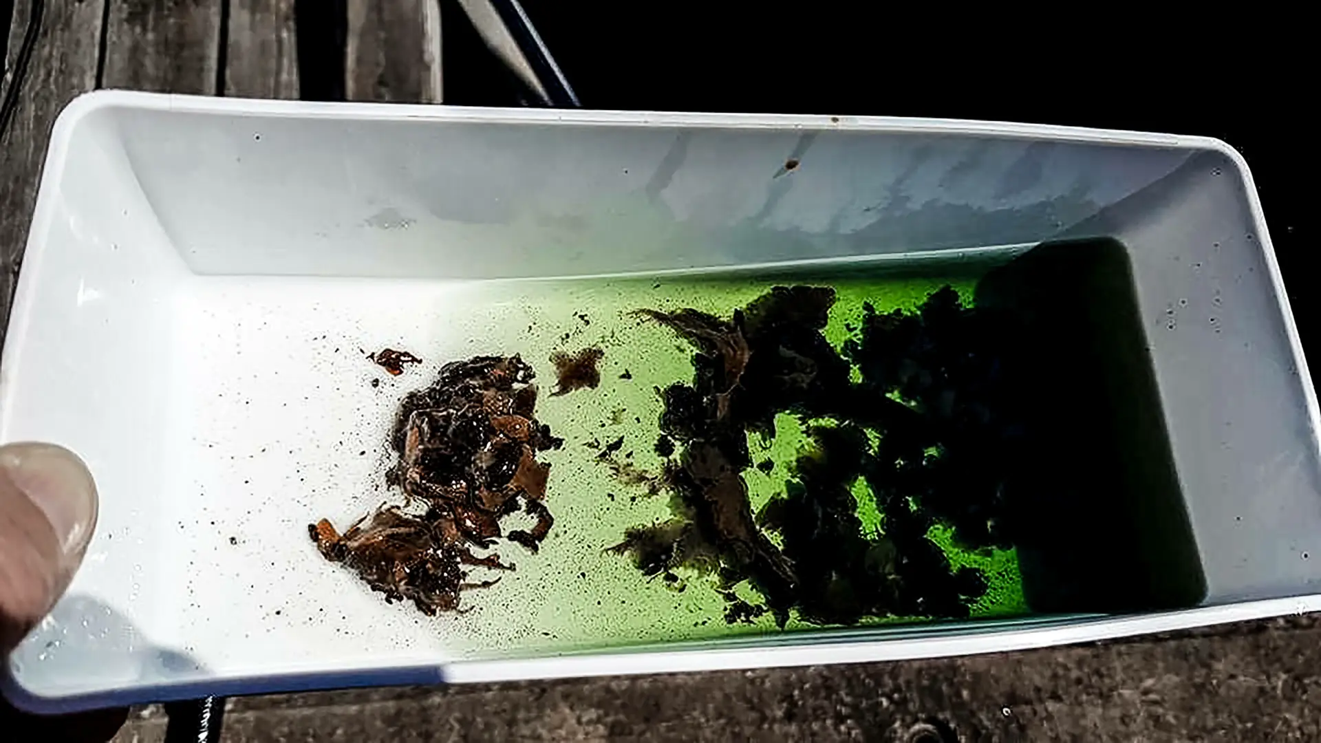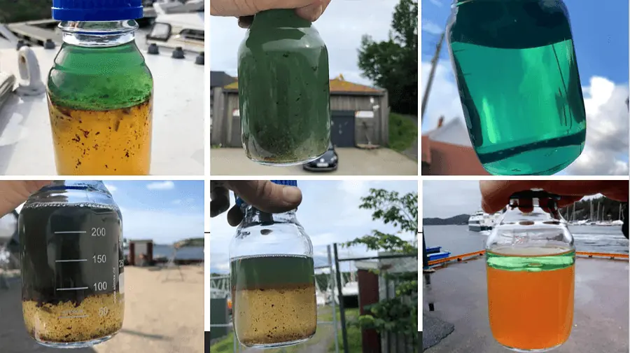 2) Vannutskiller / forfilterglassene danner et godt bilde av hvordan tilstanden i tanken/e er. De fleste båteiere bytter forfiltre og dieselfiltre på motoren hver vår, noen kan til og med se at det er både partikler, trådalger, og slim fra dieselbakterier, men reflekterer ikke særlig over dette. Her bør du være mer årvåken. Dieselen skal være grønn og klar, og ikke grumsete eller melkeaktig. Er filteret svart i tillegg – så har en sannsynligvis et tilfelle av dieselmikrobevekst.