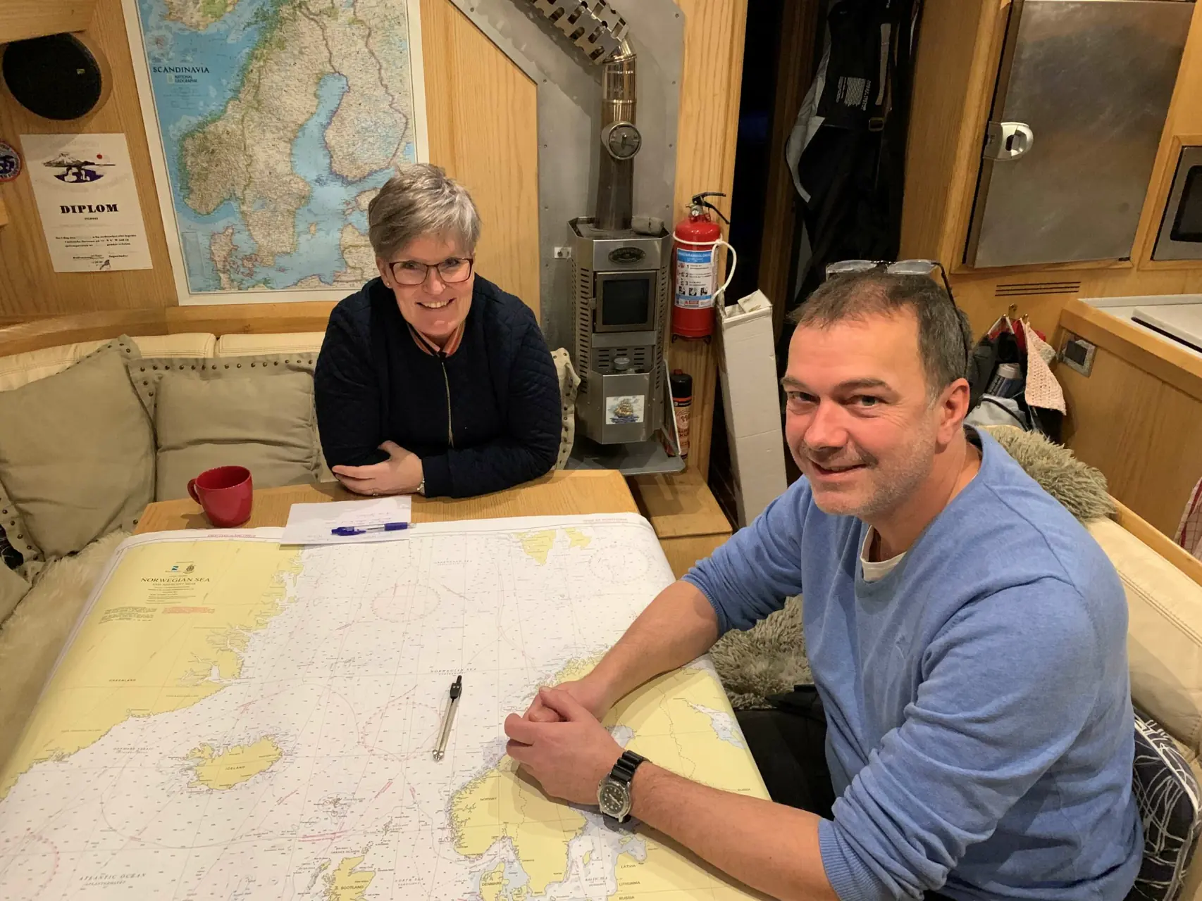 Hanne og Per Øivin ser på hverandre, Hanne finner fram sjøkartet fra den gang og bretter det ut på det store salongbordet.