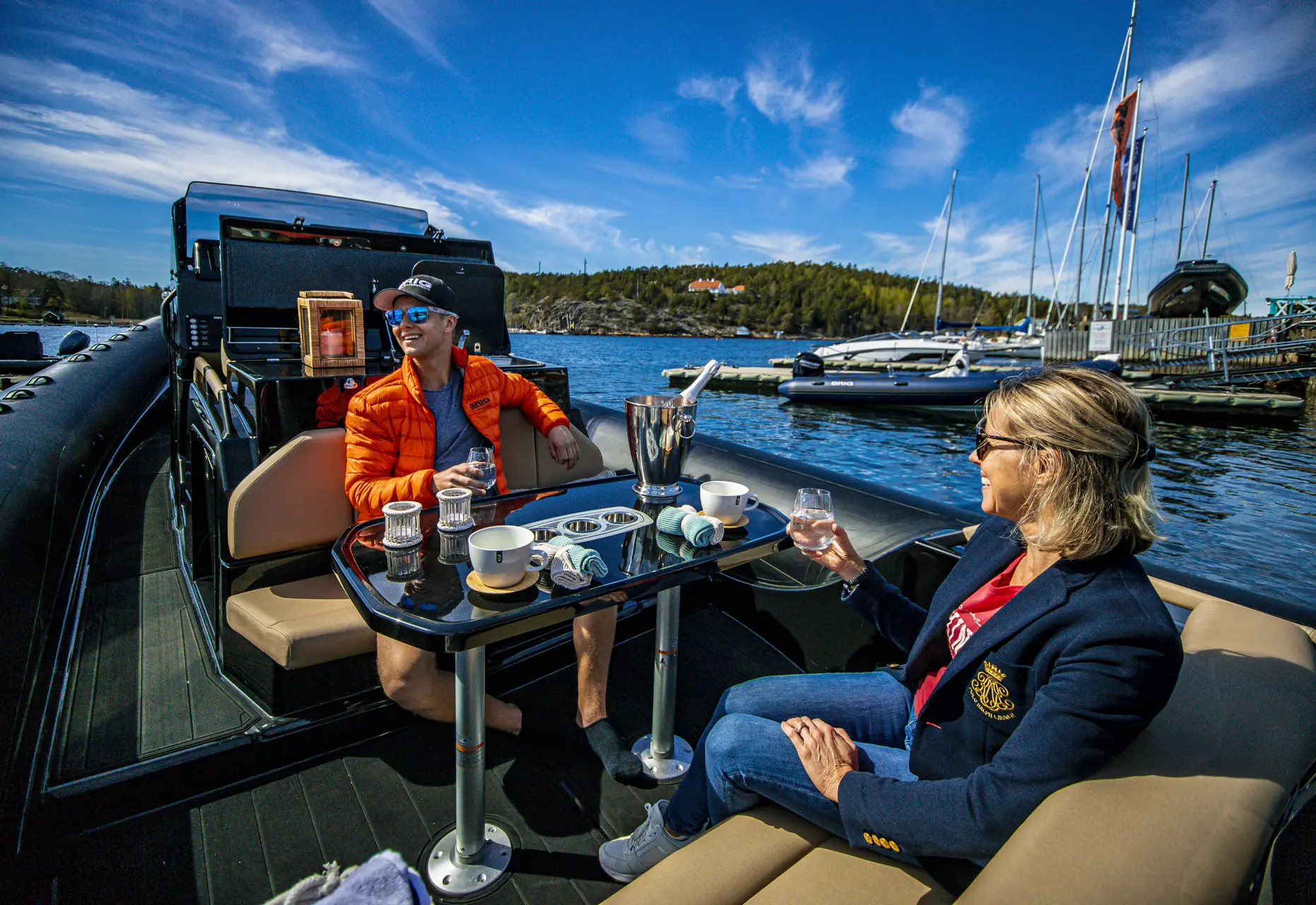 Så, er fremtiden her? Speiler dette litt av fremtidens båt? Både for hytter og hus ved sjøen? RIB er inn. Lett å bruke, trygg og solid. Kle deg skikkelig, og gi gass for å besøke andre venner og andre steder. Overnatt i båten dere to, eventuelt med et par mindre barn. Be med et vennepar eller to og ta en natt på hotell. Eller dra på solskinnstur med hele familien.