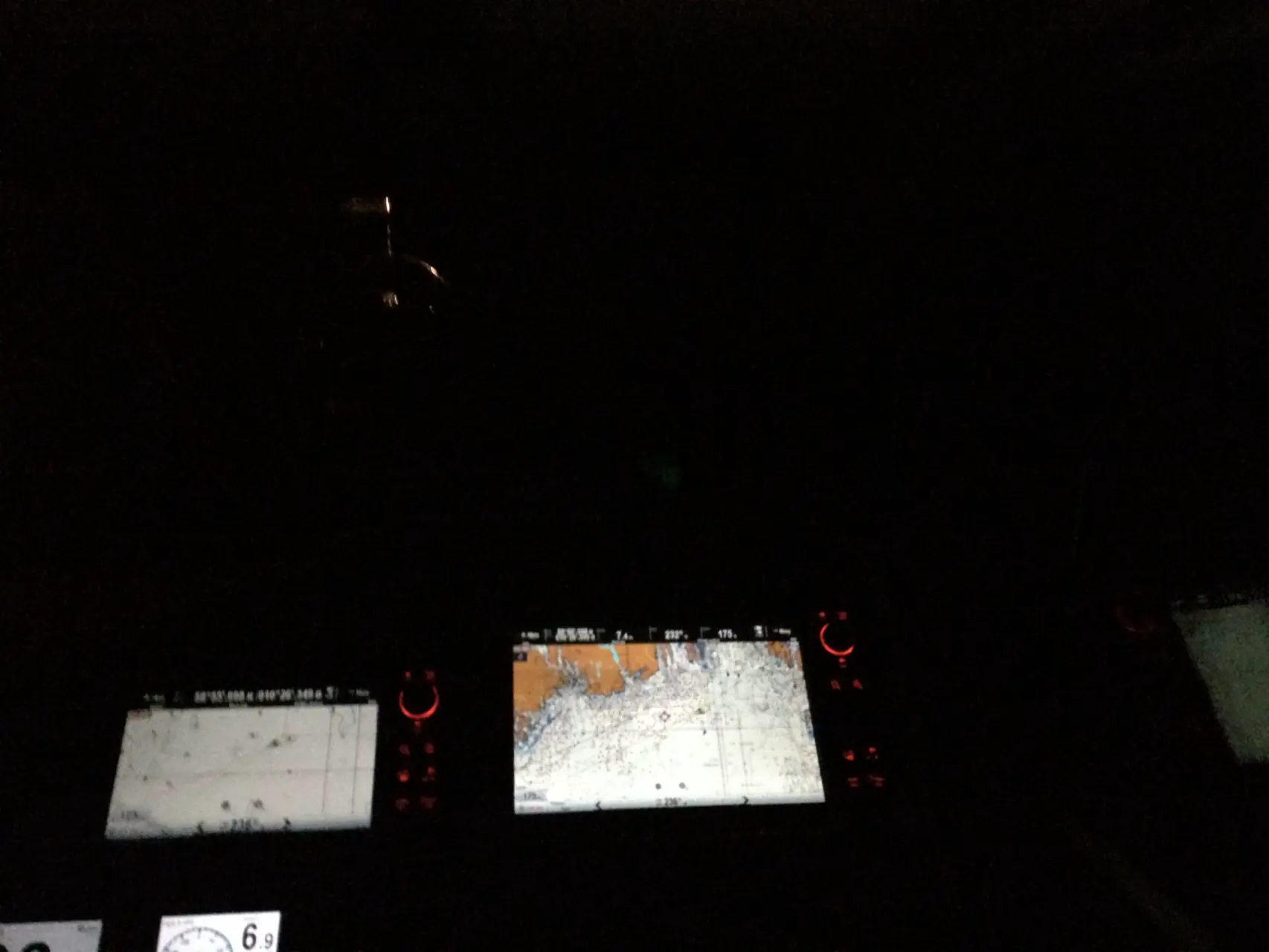 Når du kjører i mørket er nattesyn helt avgjørende. Vi anbefaler at du senker lysstyrken på kartplotter og andre instrumenter for å bevare synet best mulig. Du senker skjermstyrken på de fleste kartplottere ved å trykke på av/på-bryteren.