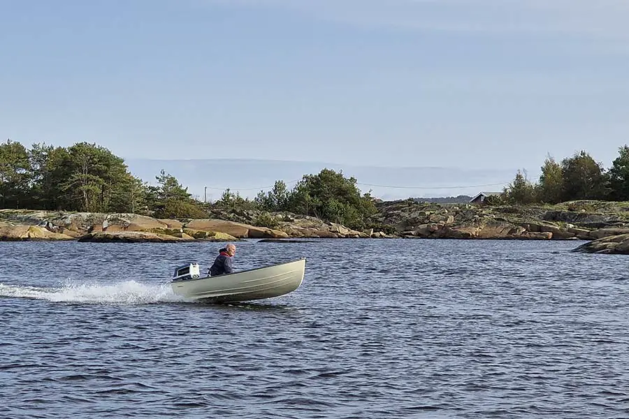 – Det var viktig for meg at motoren måtte være fra samme tidsepoke, 60-tallet. Jeg fant en Evinrude Fastwin 18 hk. på Sørlandet. Den var havarert og ikke kjørbar, men etter to år med research, jakt etter deler og overhaling gikk den som en klokke, skal vi tro rederen.