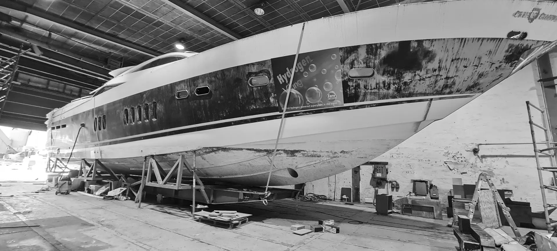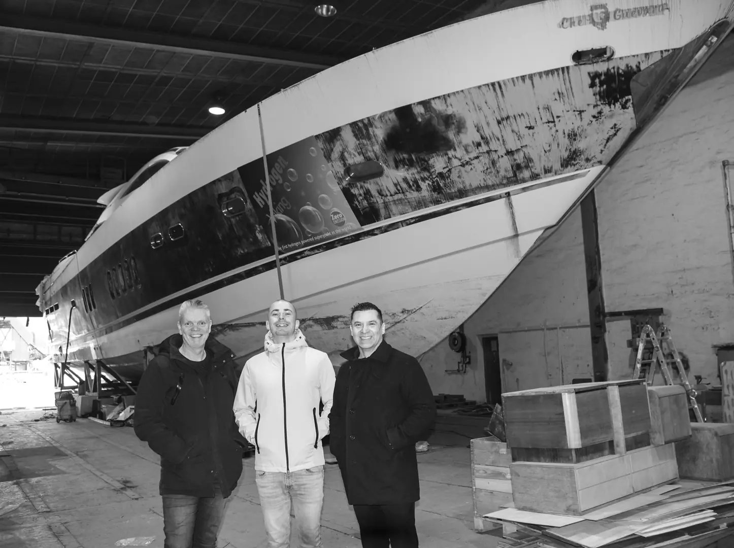Berger-brødrene sa; – Vi har hørt at dere jobber så vidt med hydrogenløsninger og brenselcelle, og vi har en plan som er ganske spektakulær. Dere har forskningsmidler, men har ikke råd til et skrog. Vi har penger ledige og kan få fatt på en egnet yacht! Etter de spesifikasjonene dere har gitt, tror vi at dette er det perfekte skroget for dere. Et skrog som er laget for 50 knop.