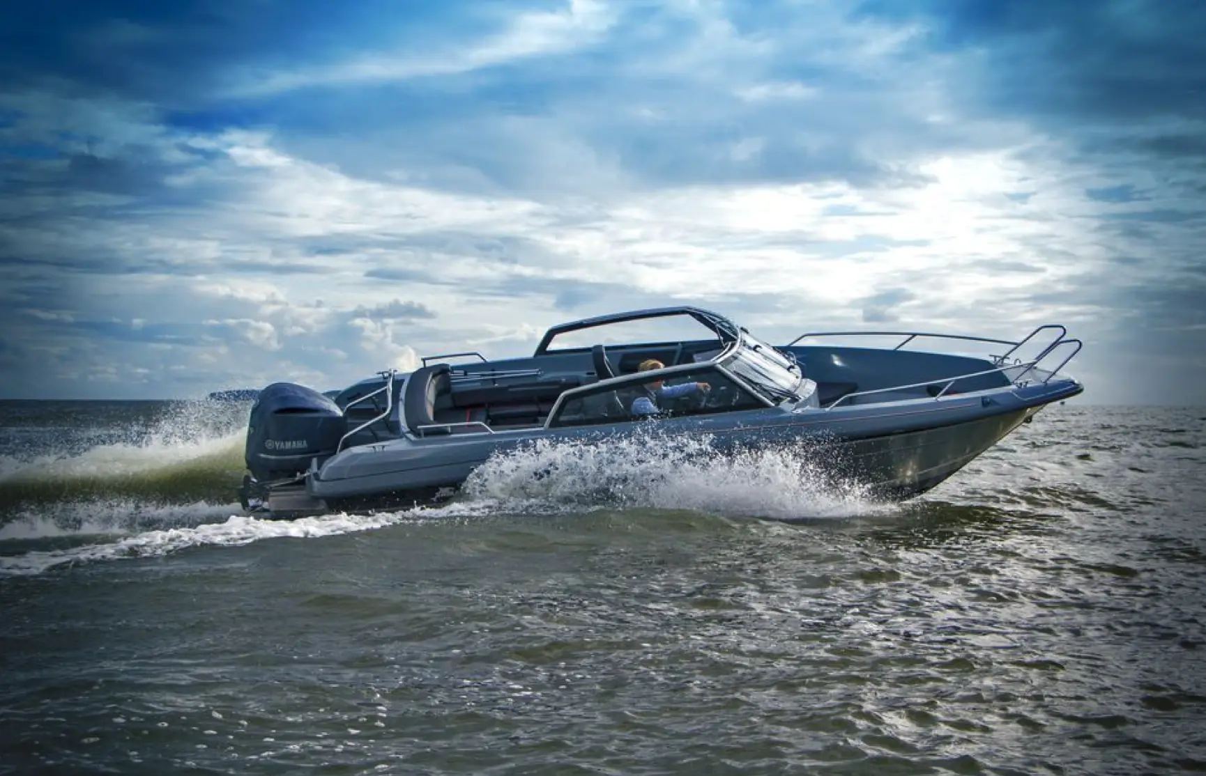 7,5-meteren fra Yamaha trives veldig bra rundt tretti knop, og da måler vi akseptable 29 liter per time. På topp måler vi 52 knop med 5500 omdreininger og et forbruk på 100 liter i timen. Akselerasjonen er en opplevelse i seg selv, og motoren og båten responderer raskt i det vi gir gass med den elektroniske girspaken. At dette er en båt vi kan kjøre langt med er vi ikke i tvil om. Dette er en behagelig transportbåt like mye som en familiebåt for varme dager.