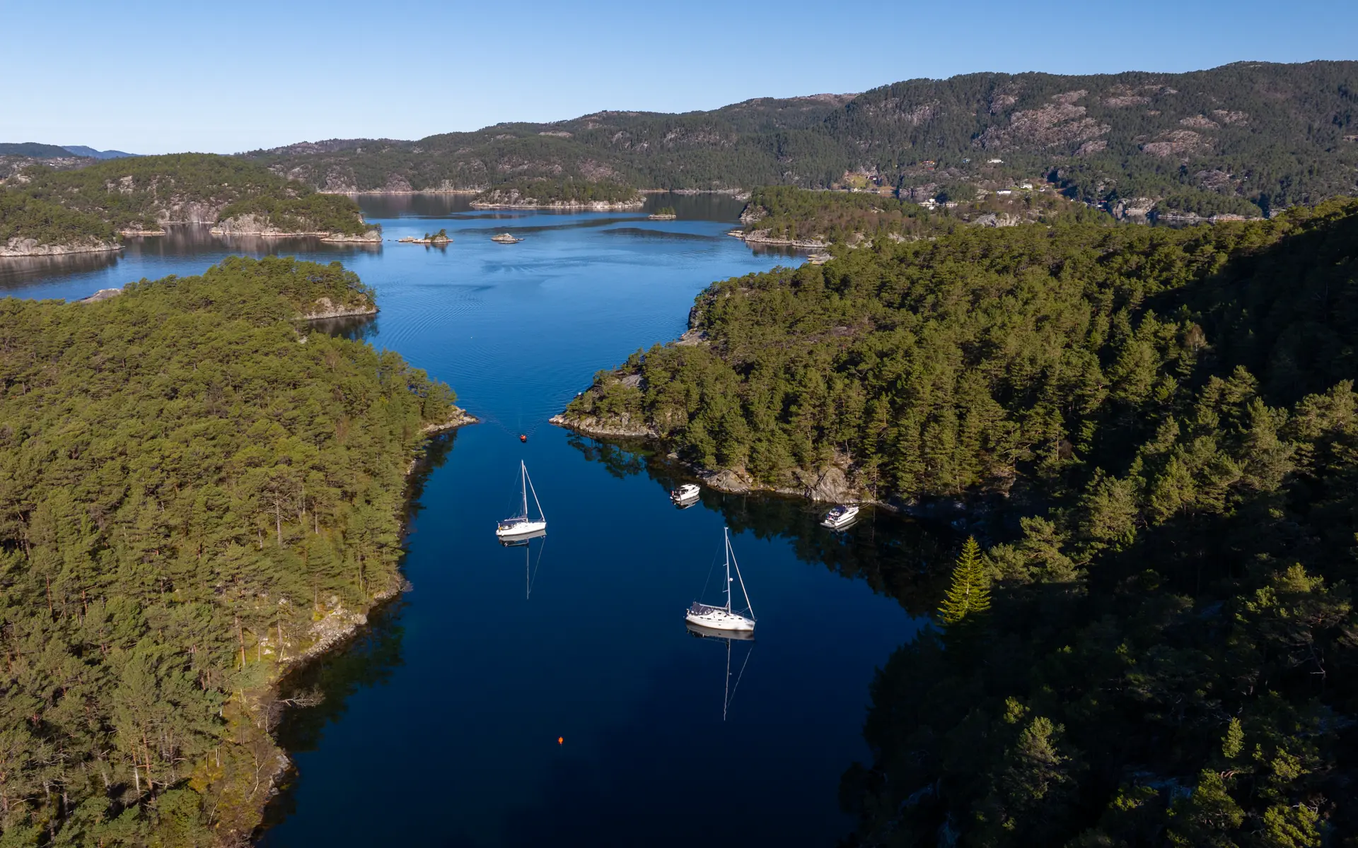 Jeg ser utover den lune naturhavnen. Solen står så lavt den klarer på den dypblå kveldshimmelen. Ved siden av oss ligger det fire andre båter, ikke verst til å være i april, tenker jeg. Vinden har lagt seg. Stillheten, den deilige roen, kommer sigende.
