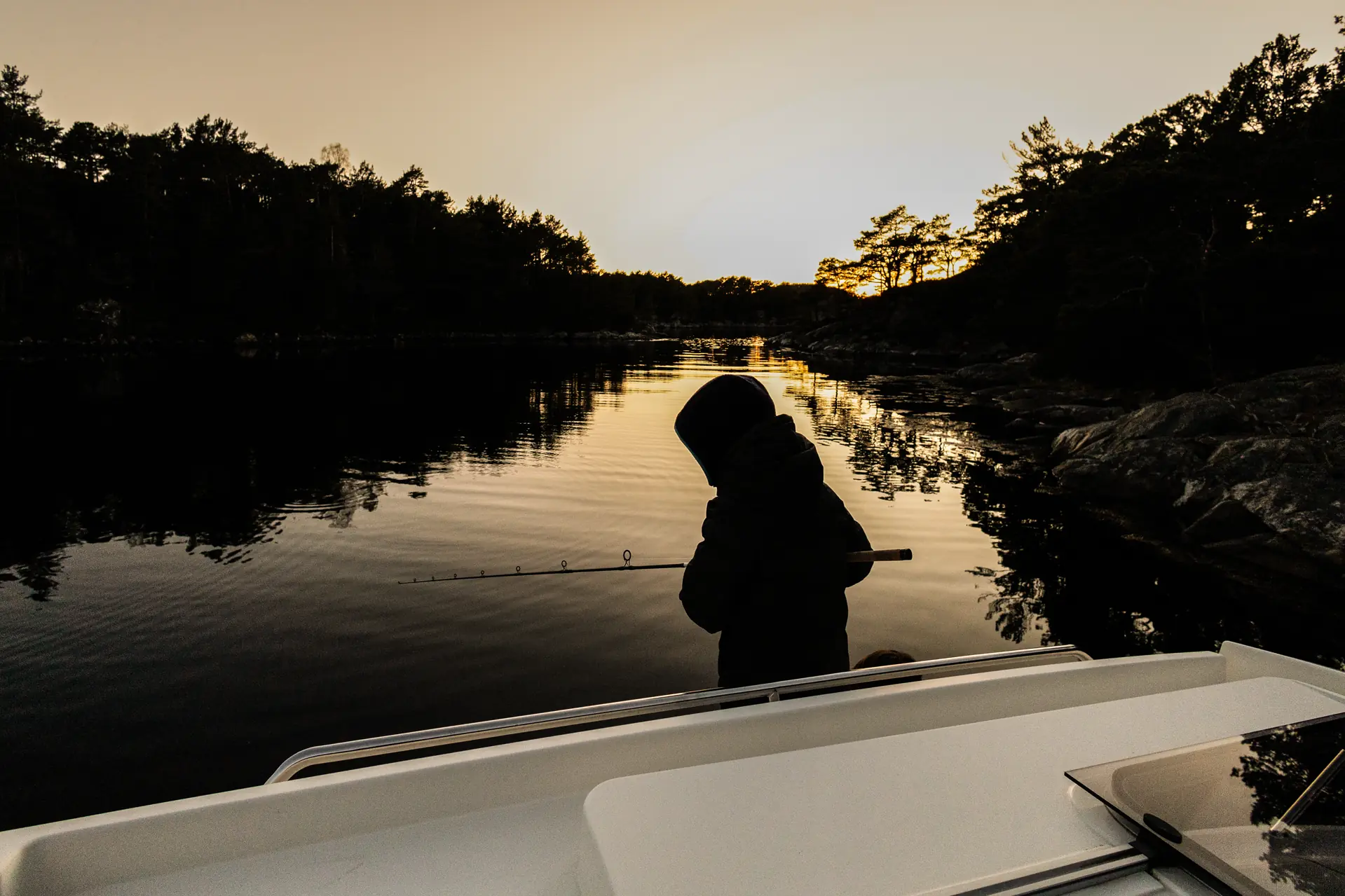 Ikke før jeg har sagt ordet, ser jeg bakenden av Lyder forsvinne ut på akterdekket frem til baugen. I høyrehånden holder han fiskestangen.