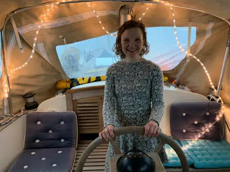 – Nå skal jeg kose meg i tre uker. Å være så tett på 50 mennesker om bord i KV-Harstad, gjør det ekstra deilig å nyte ensomheten. Som singel passer det fint med så liten plass som det er her. Bavaria 38 er nok ikke designet for overvintring på 60. breddegrad, men, med antifrysesekker og presenning, har jeg, som du ser, ingen problemer med å holde en behagelig temperatur.