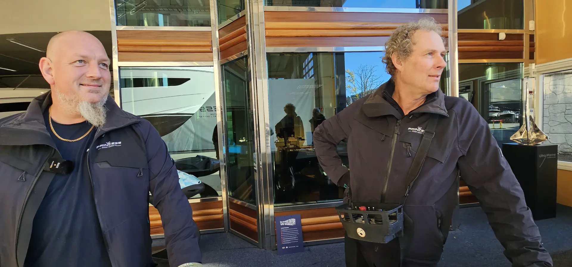 Når båten er klar skal hun inn i hallen, men dette må nøye planlegges når millimeteren teller for å få plass til yachtene fra 50 til 70 fot. Før V55 er klar skal hun stimes og poleres, og imellomtiden er det F50 som står for tur. Hun har fått sitt spabehandling og er klart til å gå inn i utstillingshallen.