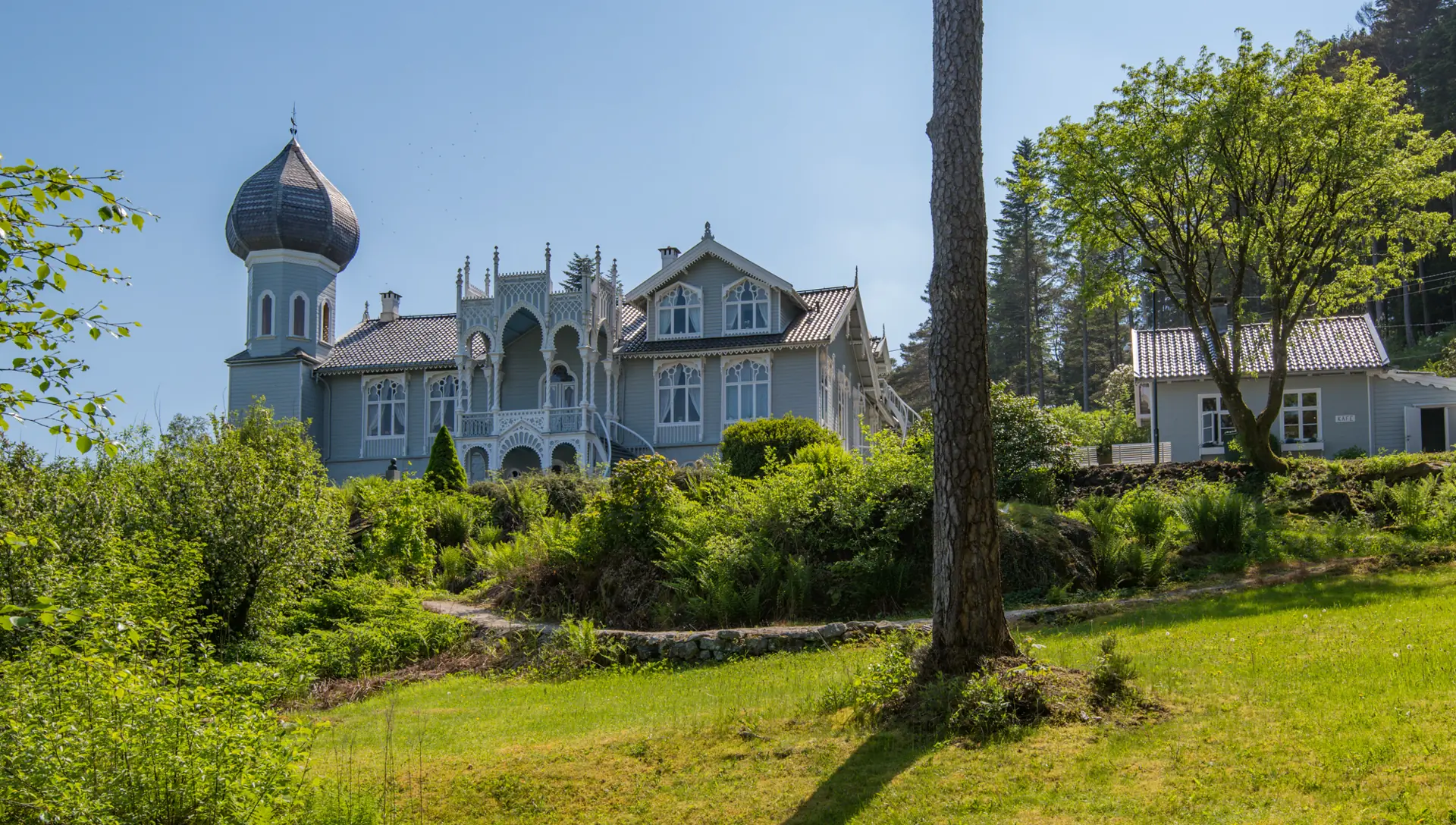 I sesongen fra midten av mai er kaféen normalt åpen. Der kan man få kjøpt kaffe, is, brus og kalde lunsjretter – og verdens beste vafler.