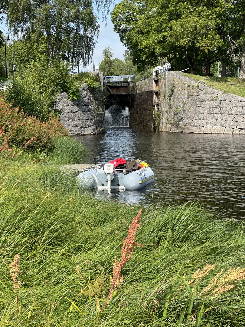 Nettopp her lå utfordringen vår: En lite brukt kanal, slusevakter som ventet på oss, litt utenfor vanlig ferietid, og altså helt alene med et tidsskjema som måtte klaffe. Å være ensom på disse vidunderlige innsjøene og trange kanalene, er nettopp en av grunnene til toktene våre. Men det skapte denne gangen også en utfordring for oss som vi ikke likte noe særlig; å ha en spesiell tid vi måtte holde. Hvis vi ikke greide å være på en gitt sluse til en gitt tid - så måtte vi vente ett døgn på neste mulighet til å komme videre.