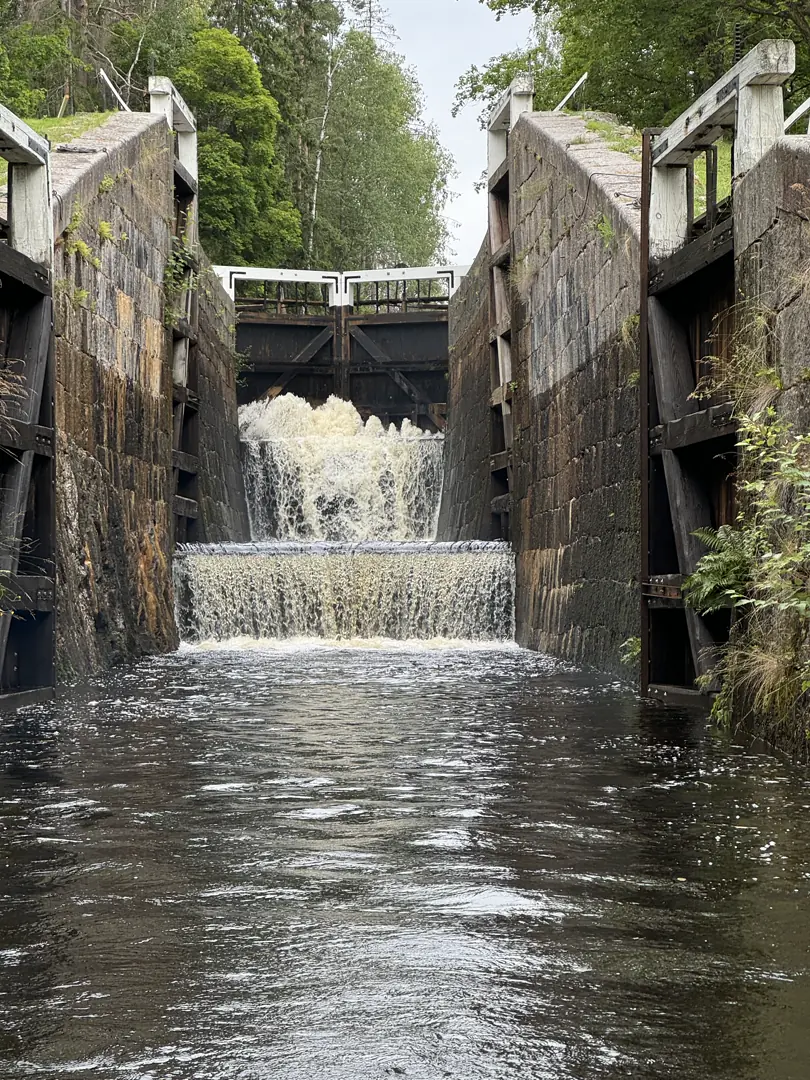 Strömsholms kanal, midt i de svenske skoger. Ingeniørkunst på sitt beste fra 1600-tallet. Like imponerende hver gang vi passerte en sluse