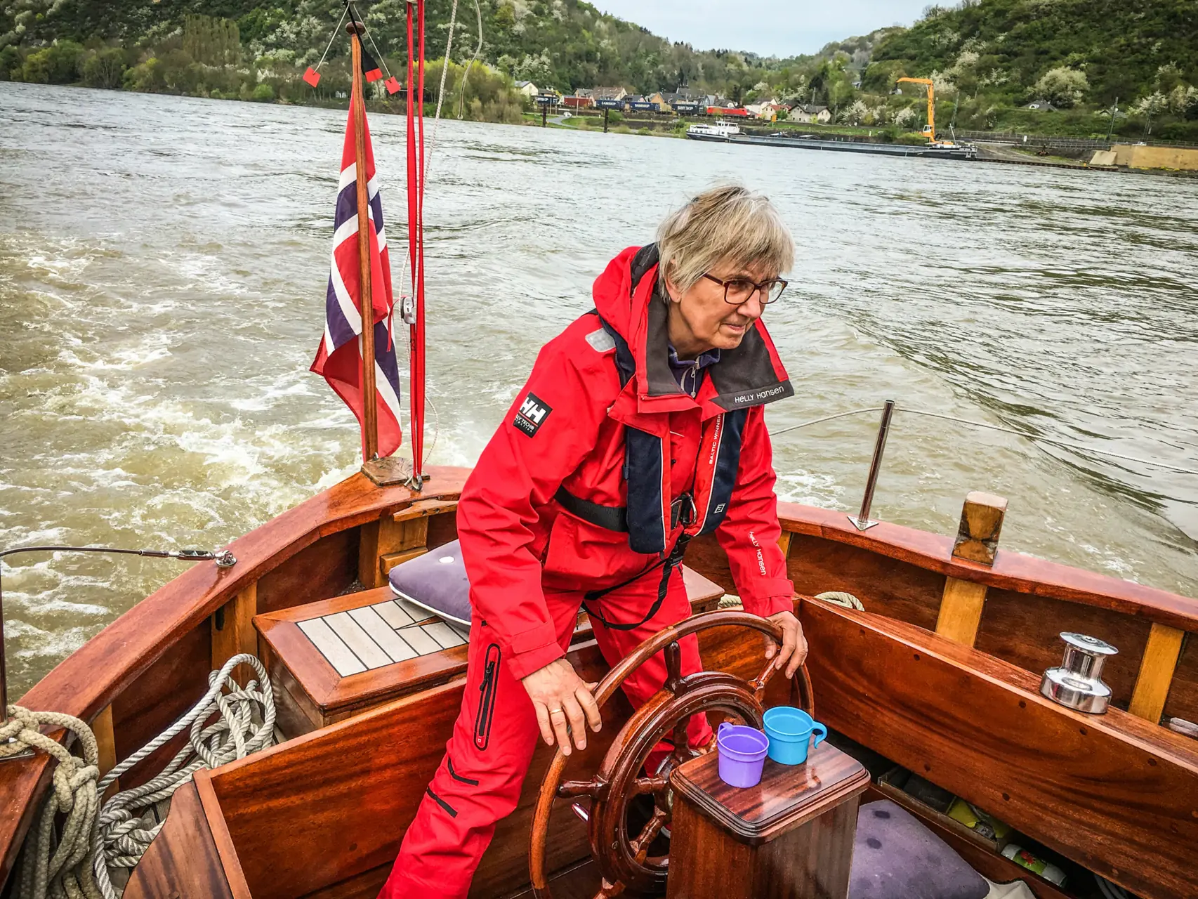Vannstand på Rhinen var tre meter over normal da vi forlot Köln. Vi hadde ikke problemer med havner, slik vi hadde i høst hvor Rhinen var to meter under normalen. Seilasen opp til Koblenz via Bonn, gikk uten problemer. I Koblenz gikk vi inn på Mosel. Mosel er regulert med sluser, så motstrømmen var minimal. Mosel er fantastisk. Flott natur. Veldig annerledes. Flotte vingårder og gamle borger rundt hver sving.