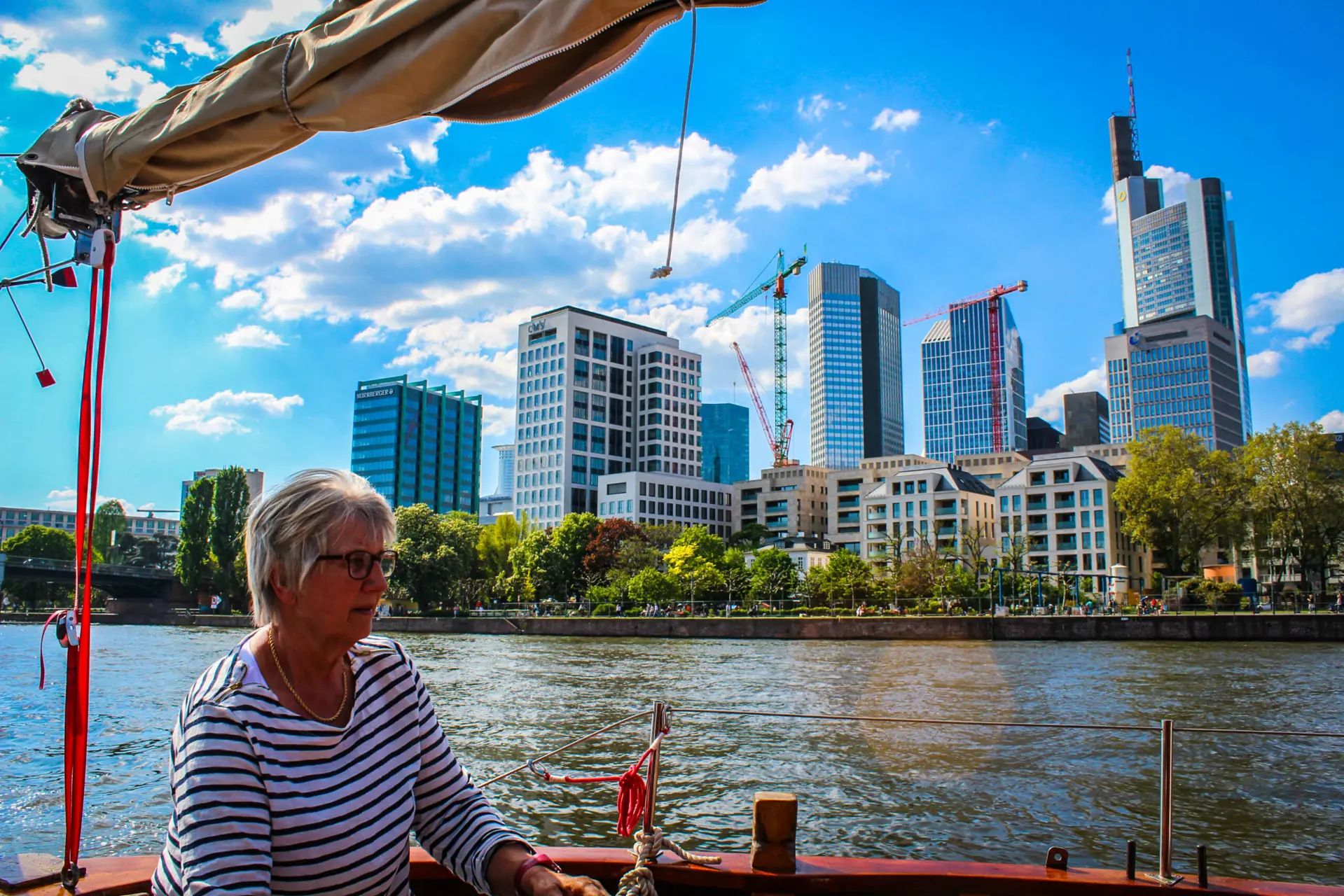 Her fikk vi selskap av den norske båten «Knerten» (Norline 36 cabincruiser) fra Farsund som var på vei til Würtsburg am Main. Koselig mannskap. Knerten gikk videre dagen etter. Kort tid etter avgang, gikk de på grunn, traff en stein og ødela propell og flyndrejern. Vi fikk melding om assistanse, noe vi selvsagt gjorde. Båten ble slept til nærmeste havn hvor den ble heist opp. Heldigvis ingen skrog skade. Ny propell ble bestilt, det var åtte ukers leveringstid. Mannskapet reiste hjem. Vår båt ligger i Frankfurt mens vi er hjemme i fire uker. Ny start på Main er 15. juni.