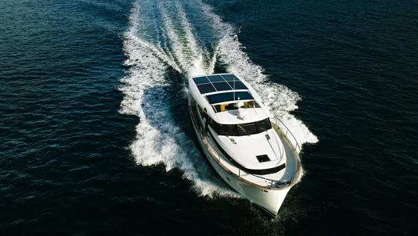 Velger du å bruke førerposisjonen innendørs sitter du langt fremme i båten på babord side og har god oversikt fra baug til akter. Takket være at frontrutene har rett vinkel blir det også bedre plassfølelse her. Den har også et smart skyvevindu slik at du får bedre oversikt, men også kan håndtere gass/gir, joystick og thrustere fra dollbordet utenfor hvis det skulle være nødvendig. Du kan også få skyvedør ut til dekket på motsatt side, som det solgte eksemplaret i Florø har. Vår testbåt er godt utstyrt, og har også førerposisjon utendørs på akterdekket.