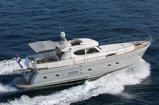 Sirena 58 er totalt 18,58 meter og 61 fot lang inkludert badeplattformen, og med en bredde på 5,36 meter blir det stort volum om bord. Takket være at bredden strekker seg langt forut får den mye bovolum under dekk, og oppleves som større enn sine 58 fot. Det samme må vi kunne si om flybridgen, som strekker seg over hele styrhuset. Her er det wetbar, mulighet for grill, takdusj, stor plass for egne møbler, solsenger, og ikke minst en sofa som rommer syv-åtte personer med stort spisebord, samt en solseng. Også fremme i baugen er det sosial plass med sofa, mulighet for bord og solseng med justerbare ryggstøtter, koppholdere, lys og styring av musikk. Sirena 58 kommer også i coupé-versjon med takluker istedenfor flybrige.