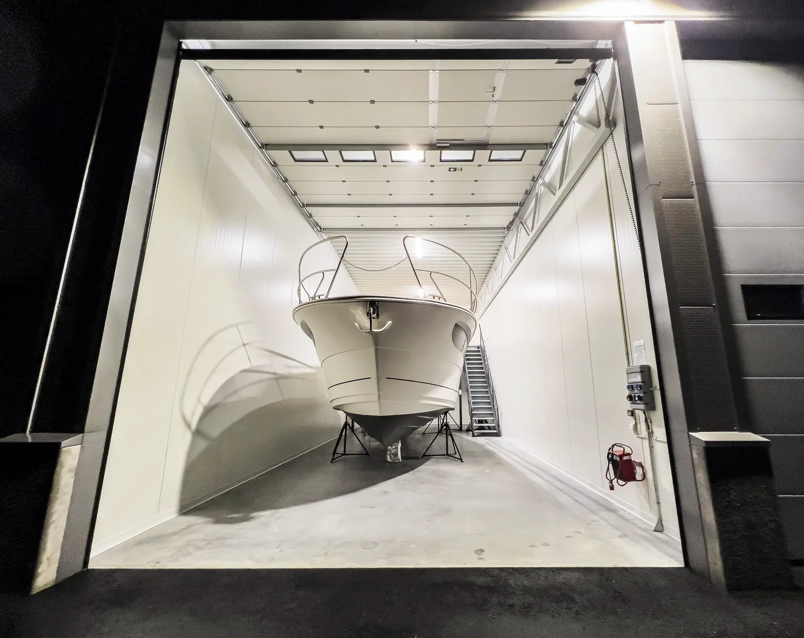 – Vi registrerte at det har blitt populært med lagerlokaler og garasjer lenger inn i landet, og som gjerne brukes til å lagre båter. Problemet er når du skal begynne å transportere og håndtere enn større båt over tretti fot. Her løfter vi båten nærmest rett inn i garasjen. I tillegg har vi spesialisert service på området om det trengs. Du får en egen seksjon midt i en maritim klynge, forklarer Aalrud.