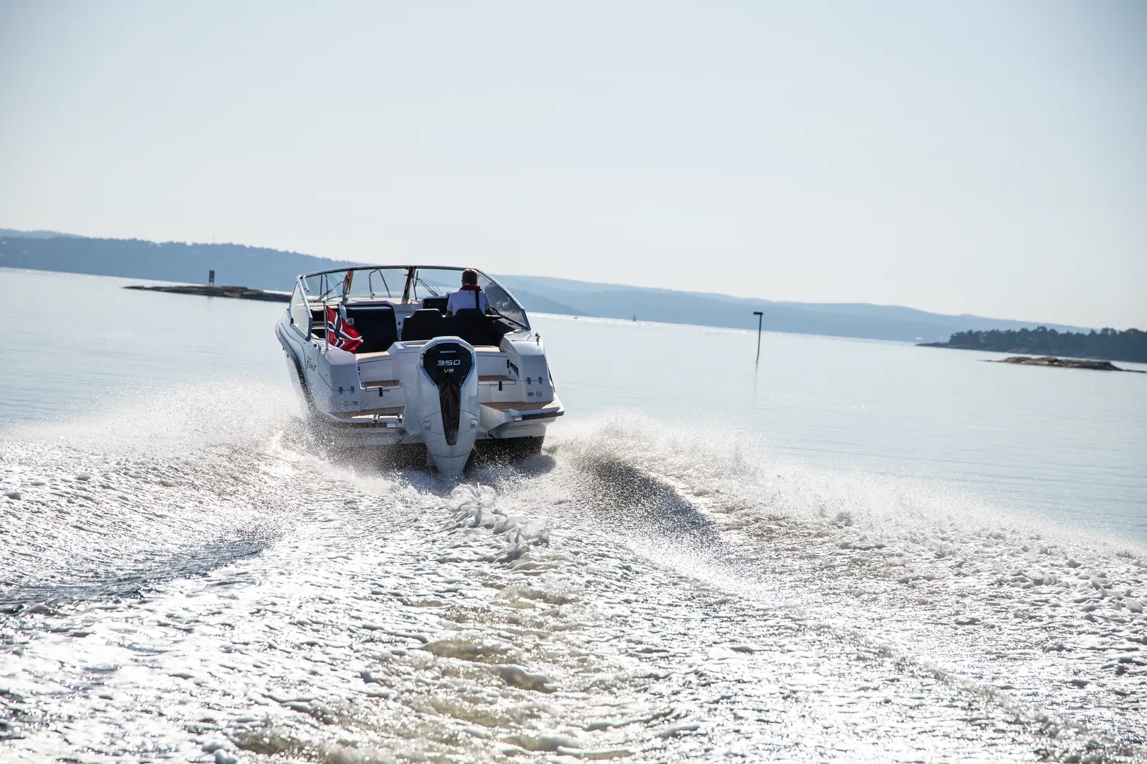 Båten som er avfotografert går med Hondas nye V8 på 350 hk., og med drivstofftank på 310 liter skal rekkevidden være på omtrent 250 nautiske mil, estimerer Silver. Toppfarten er rundt 50 knop, og produsenten lover et skrog uten planingsterskel.