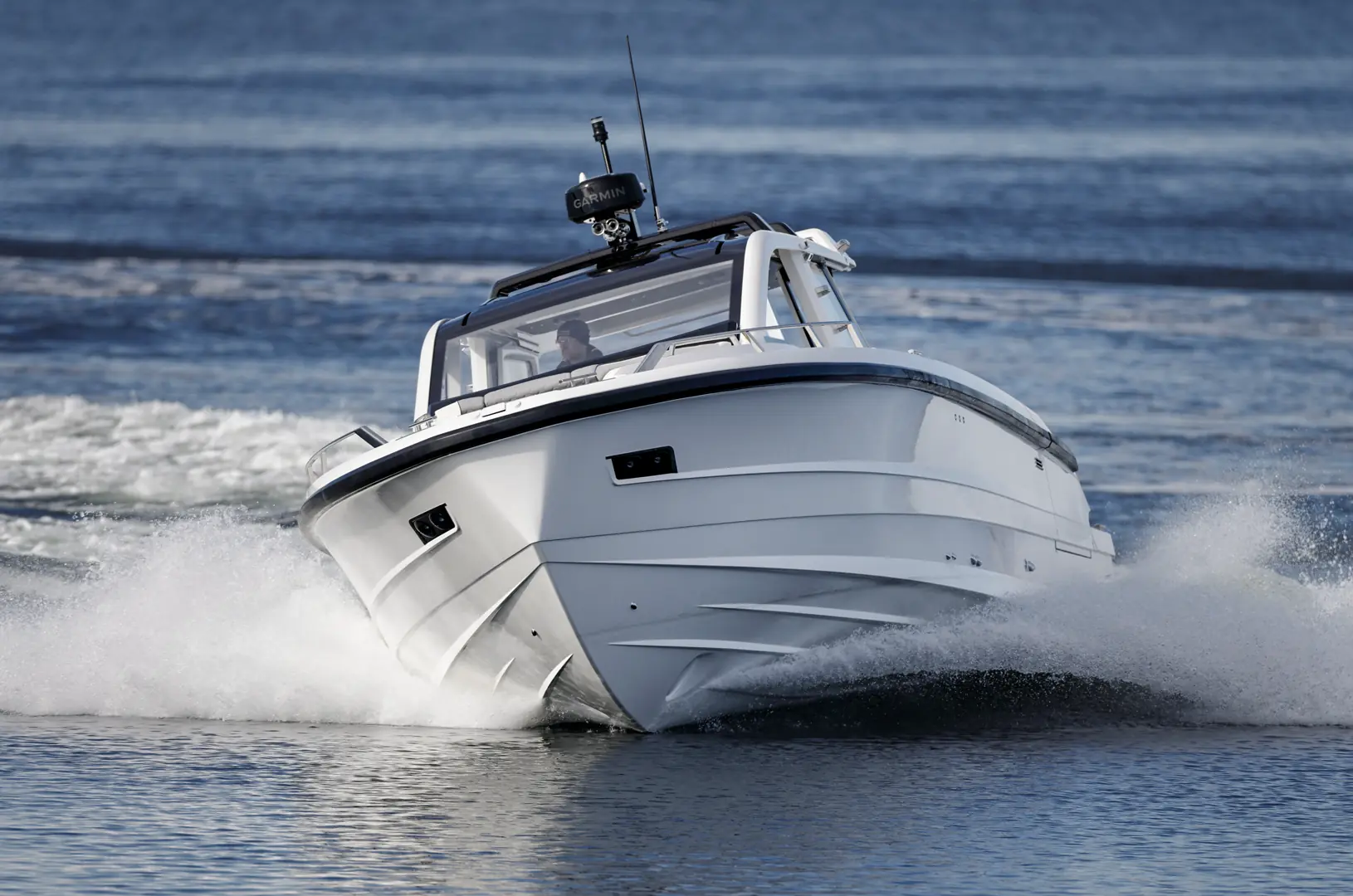 Båten er CE-kategori B-godkjent for opptil 12 personer, og fartspotensialet er imponerende: