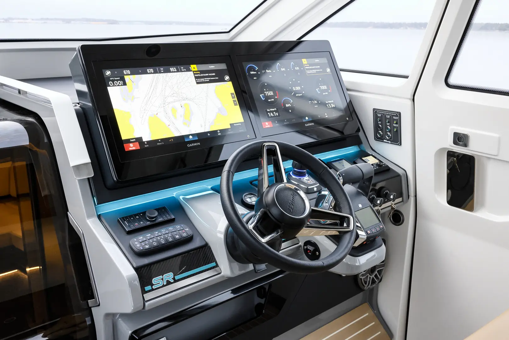 Førerplassen er utstyrt med store skyvedører som beskytter mot vær og vind. Når dørene er åpne, «forsvinner de helt», noe som gir en følelse av å være i en åpen båt. Et skyvbart tak forsterker ytterligere romfølelsen. I tillegg kommer SR40 med et robust takstativ for SUP-brett, fiskestenger og annet utstyr.