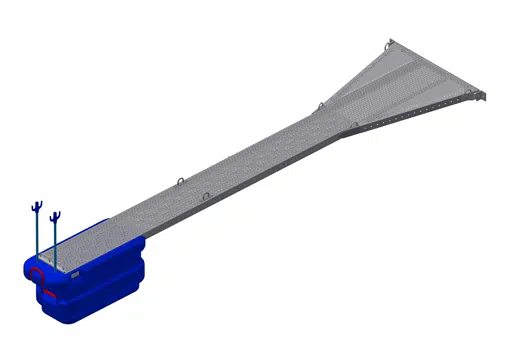 Nå første gulltips – fest alle skruer og skiver på forhånd, før fenderne monteres til brygga! Det sparte i alle fall oss for både skruer fra å bli mistet i sjøen og tid. Fenderlenka festes med to skruer per element, og her kommer neste monteringstips. – Fest en skrue øverst i enden, og så en øverst i andre enden. Ta så midten, og midten og midten. Da blir det enkelt å justere fenderne riktig underveis også, slik at du unngår å sitte med for mye eller lite fender i hånda i den andre enden… Når fenderremsa er på plass, pumpes den opp med luft til cirka 1 bar – og vips – så er longsideplassen fendret.