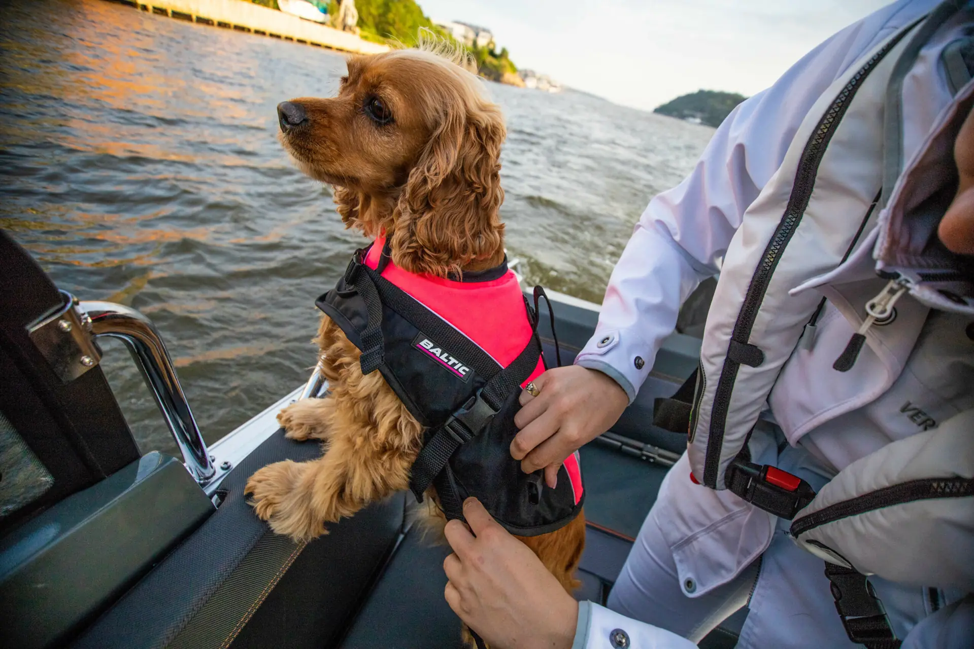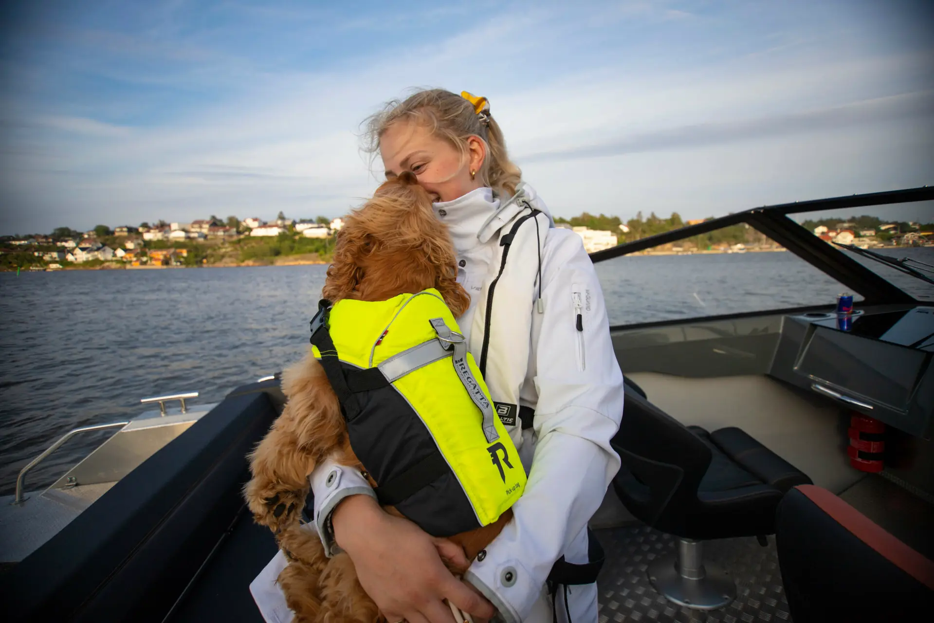 – Vi vil jo riktig nok ha hunden vår i båten, men det kan faktisk skje fortere enn man aner at hunden faller over bord. Hvertfall hvis man er på båttur med en liten spanjol som er oppvokst langt inne på fastlandet i Spania og har strevet mer rundt i gatene enn i en trygg seng. Jeg husker fortsatt det forvirrede blikket som forsiktig tittet ut av sprinklene på buret inne på flyplassen, etter en lang flytur helt til Norge. Det var så skjørt. Men etter et helt år har livene til oss begge blomstret, og vi er hverandres beste venner og trygghet. Han fotfølger meg hvor enn jeg går, og han vil gladelig hoppe i land på brygga etter en båttur, for å forsikre hele familien om at brygga er trygg, men ofte to meter for tidlig. Dette har ført til en hel del flere «hund over bord» enn jeg hadde sett for meg. Og da er ingenting viktigere enn en ordentlig god flytevest, forteller hun.