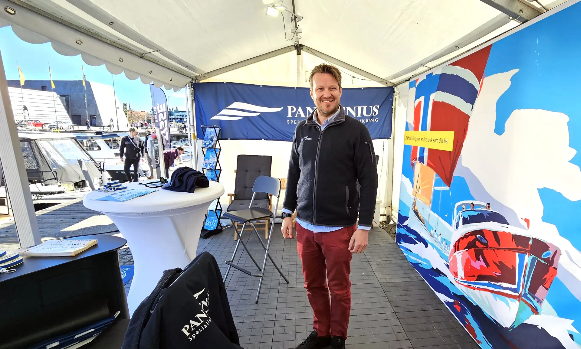 En som var ny utstiller på Stavanger båtmesse var forsikringsselskapet Pantaenius. Vi møtte daglig leder Trond V. Furu fra den norske avdelingen. Han var veldig fornøyd med messen. De hadde fått mange forespørsler fra besøkende som ønsket nytt forsikringstilbud.