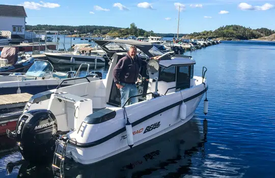 – Det var også den første båten på markedet med slikt styrhus, i hvertfall i Europa. Tanken var rett og slett å gi beskyttelse for vær og vind, men folk lo. Veldig få hadde tro på konseptet. Det ble imidlertidig suksess da han fikk inn en ordre på fjorten båter. Det ble virkelig en milepæl. Den gang var verftet kun kapabel til å bygge fire – fem båter i året, og dermed var konseptet for fremtiden spikret, forteller Thomas, og fortsetter.