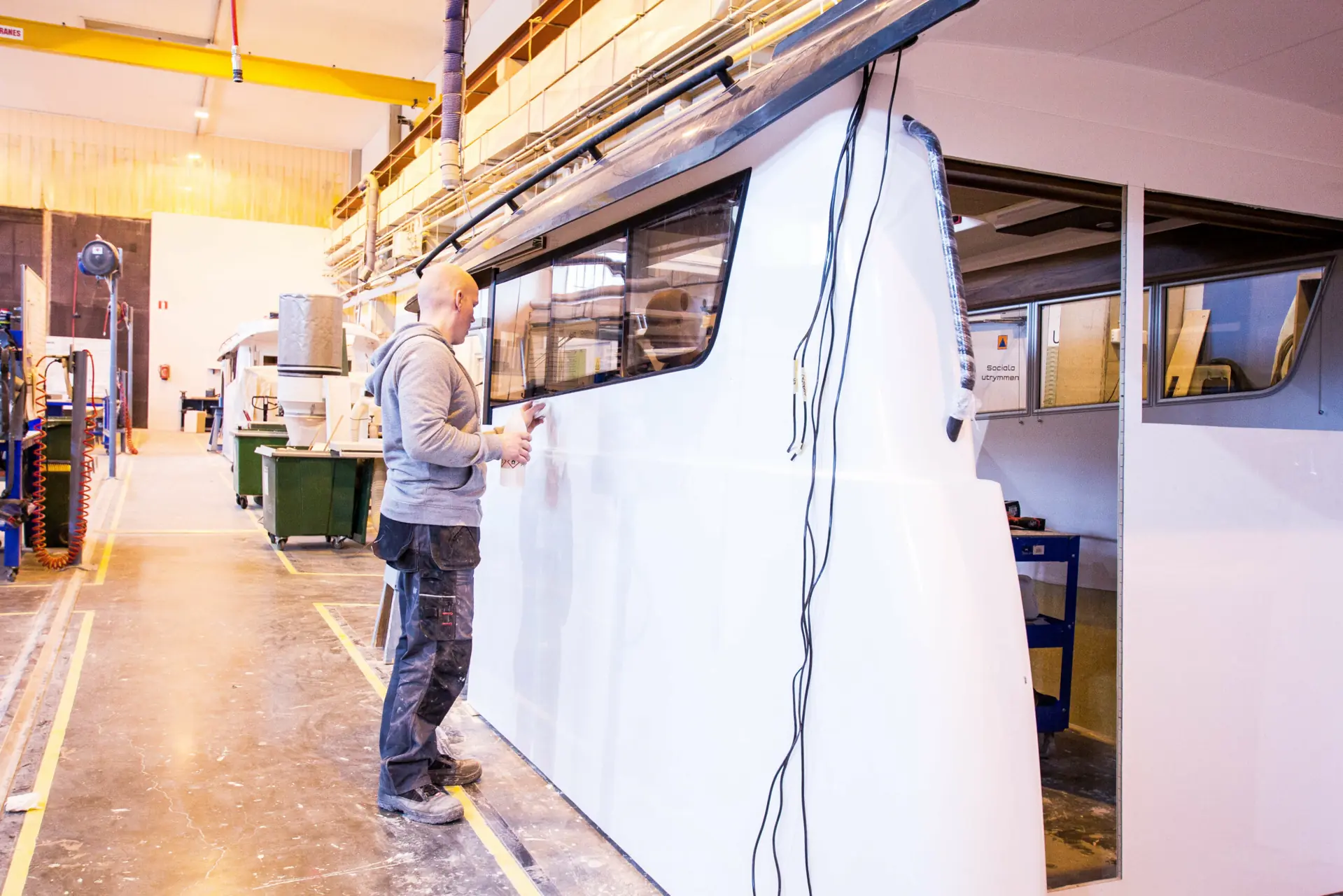 Og når en ny Sargo virkelig er på trappene, er et sikkert tegn at Thomas Sarin har flyttet kontor fra den nye fabrikken tilbake til «hjemlige trakter», der det hele startet. – Jeg er aktivt med under hele prosessen, også under byggingen av det første eksemplaret. Det skjer på den gamle fabrikken der vi også har snekkeriet. Men det tar lang tid før vi faktisk starter byggingen. Hele utviklingsprosessen tar gjerne opptil to år, og foregår fullt og helt i Finland. Til og med formene blir frest her, bare to hundre meter unna fabrikken, forteller Sarin stolt.