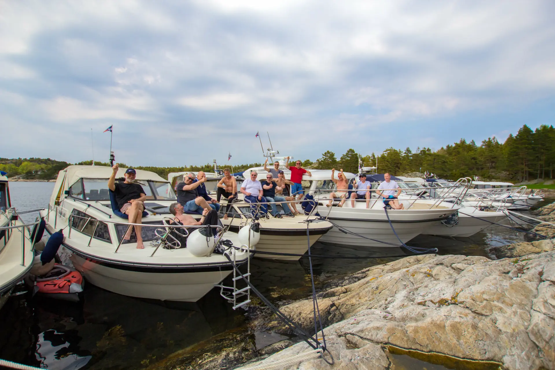 Det som altså begynte med tre båter for syv år siden har i dag utviklet seg til en fast tradisjon med opp til nitten båter innom i løpet av helga – og båtene er ganske så typiske de som ligger hos foreningen.